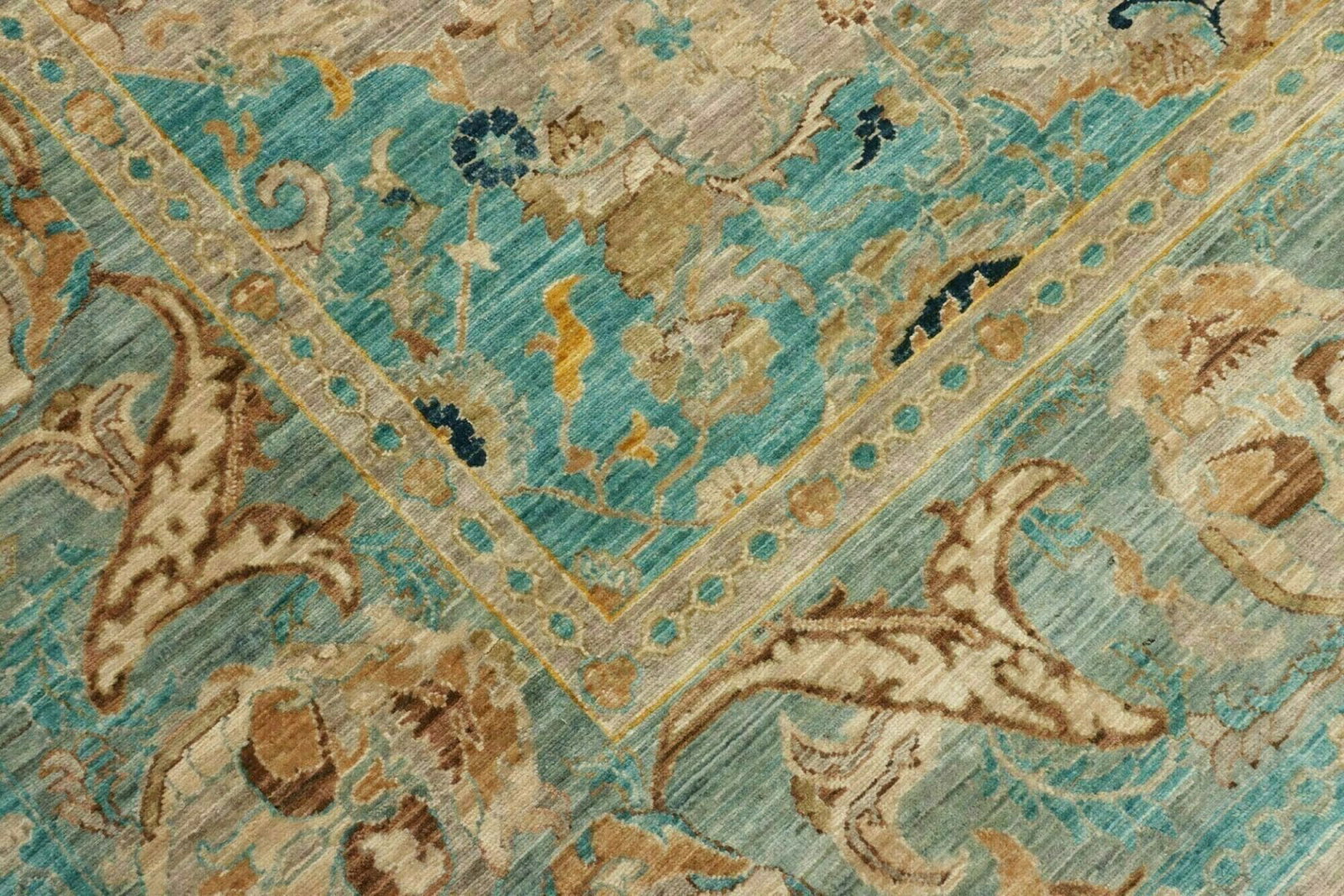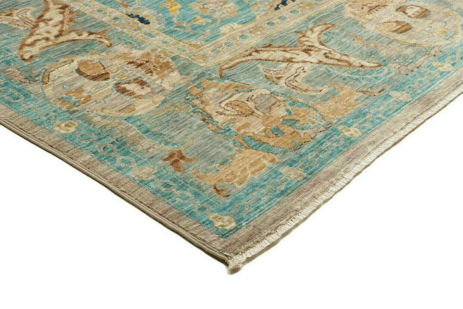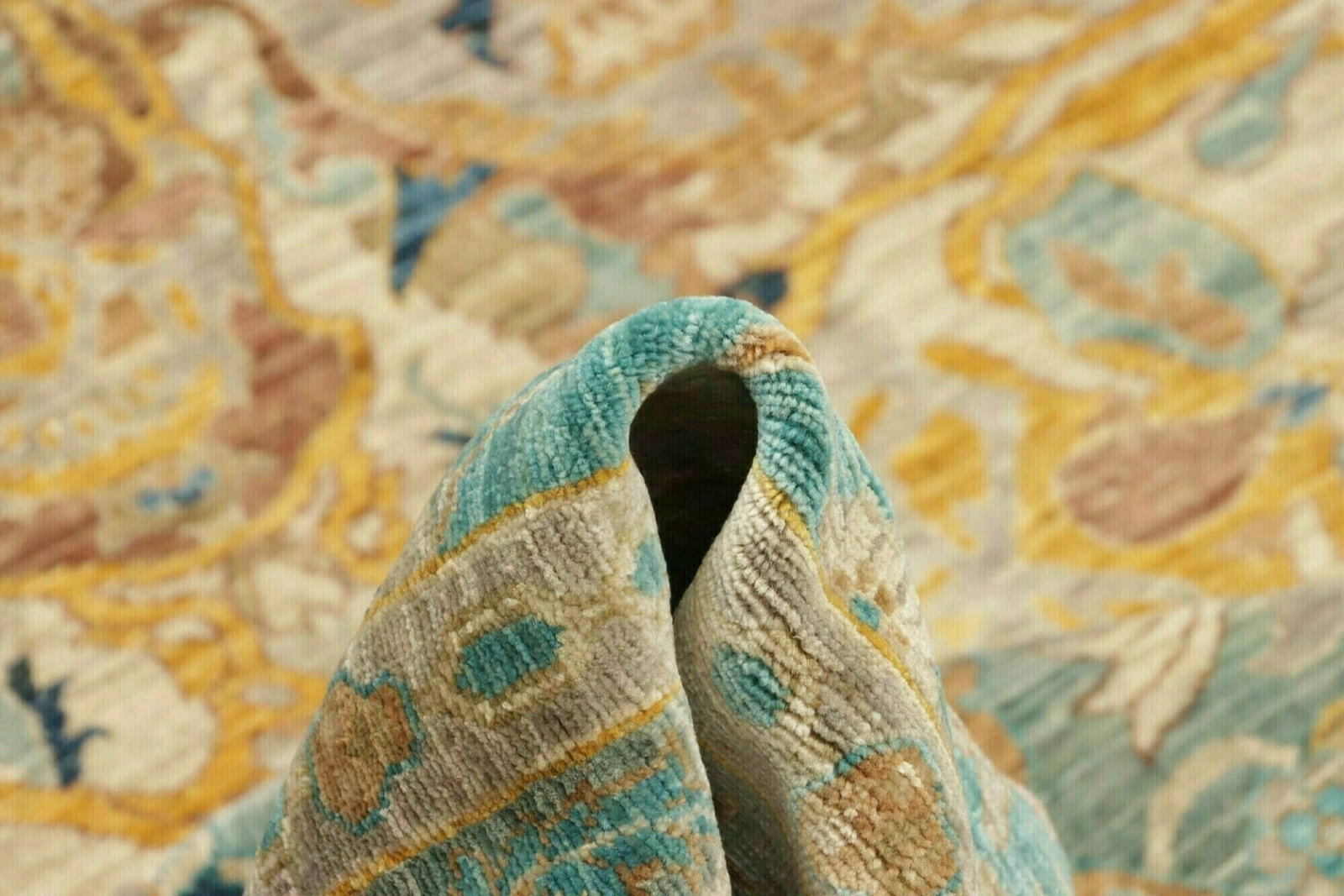 Dieser Teppich wird aus reiner Wolle gefertigt, die für ihre Langlebigkeit und Weichheit bekannt ist. Wolle ist nicht nur ein robuster Stoff, sondern auch ein natürlicher Wärmeisolator und sorgt somit für ein angenehmes Raumklima zu jeder Jahreszeit. Die handgeknüpfte Technik ermöglicht eine hohe Knotendichte, die nicht nur zur Langlebigkeit des Teppichs beiträgt, sondern auch zu einem detailreichen, strukturierten Erscheinungsbild. Das handwerkliche Können der Teppichknüpfer spiegelt sich in jedem Knoten wider, was jeden Teppich zu einem Unikat macht.