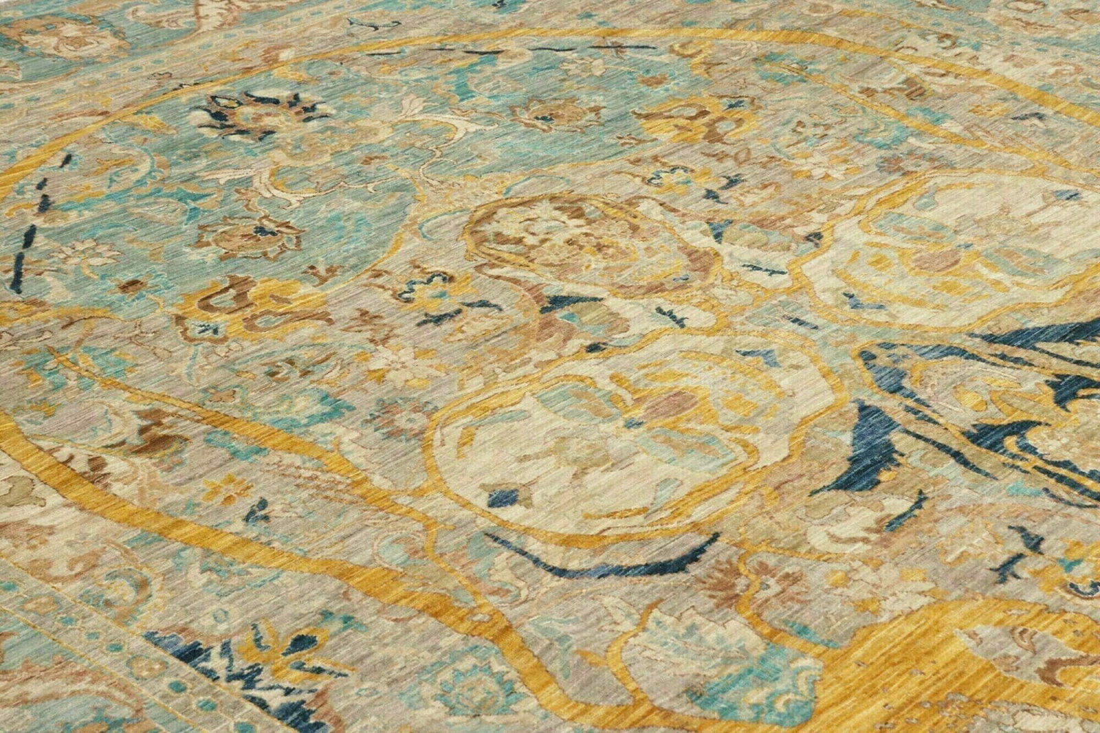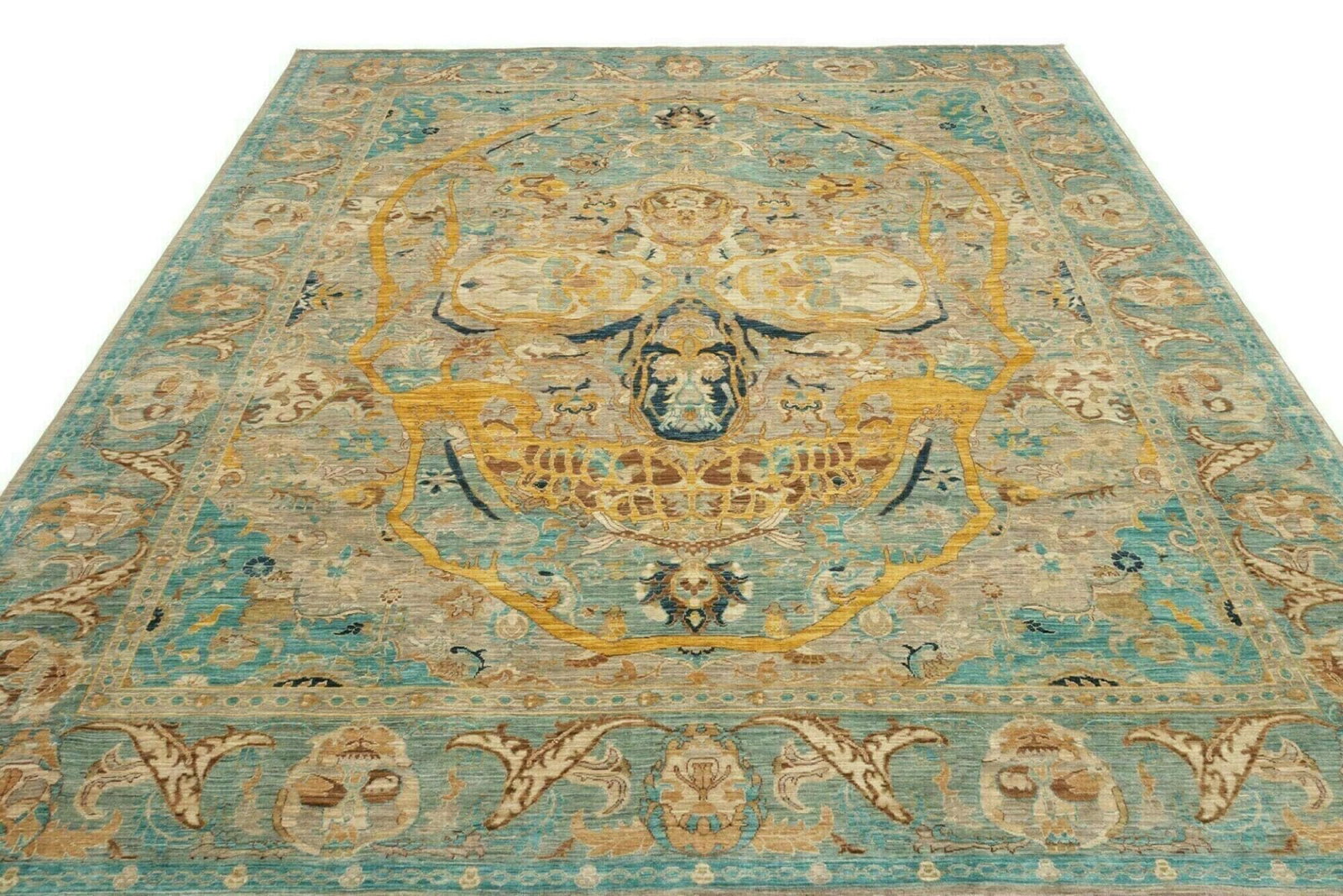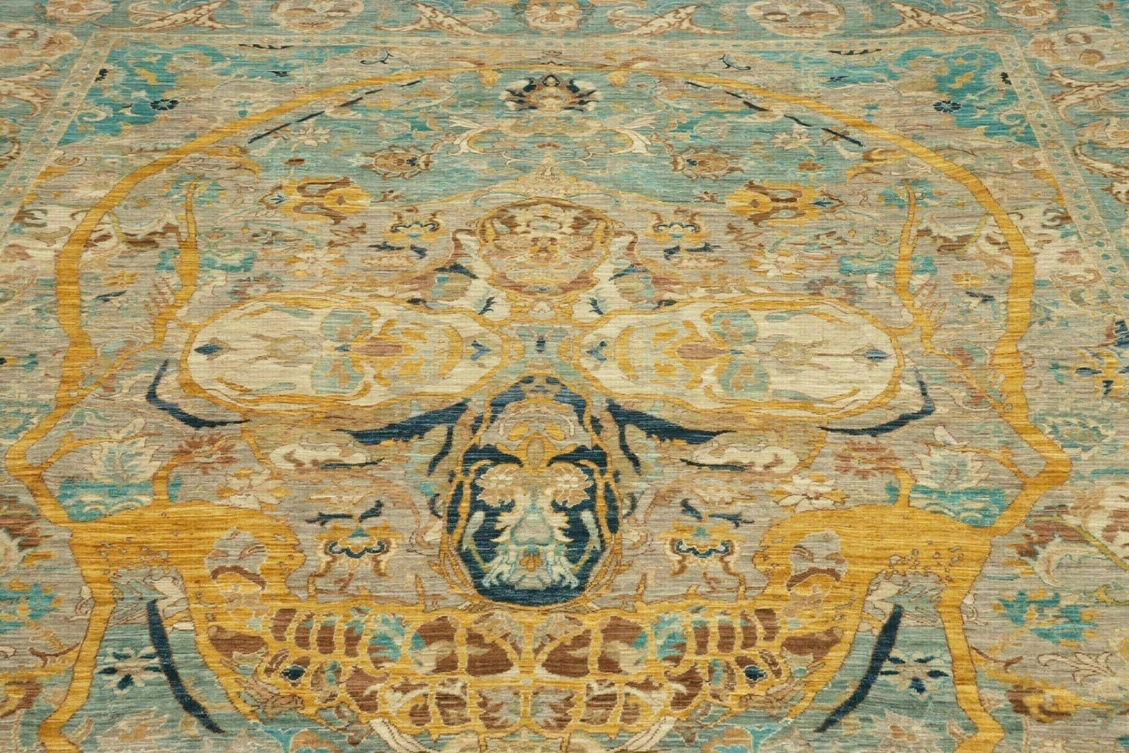 Dieser Teppich wird aus reiner Wolle gefertigt, die für ihre Langlebigkeit und Weichheit bekannt ist. Wolle ist nicht nur ein robuster Stoff, sondern auch ein natürlicher Wärmeisolator und sorgt somit für ein angenehmes Raumklima zu jeder Jahreszeit. Die handgeknüpfte Technik ermöglicht eine hohe Knotendichte, die nicht nur zur Langlebigkeit des Teppichs beiträgt, sondern auch zu einem detailreichen, strukturierten Erscheinungsbild. Das handwerkliche Können der Teppichknüpfer spiegelt sich in jedem Knoten wider, was jeden Teppich zu einem Unikat macht.