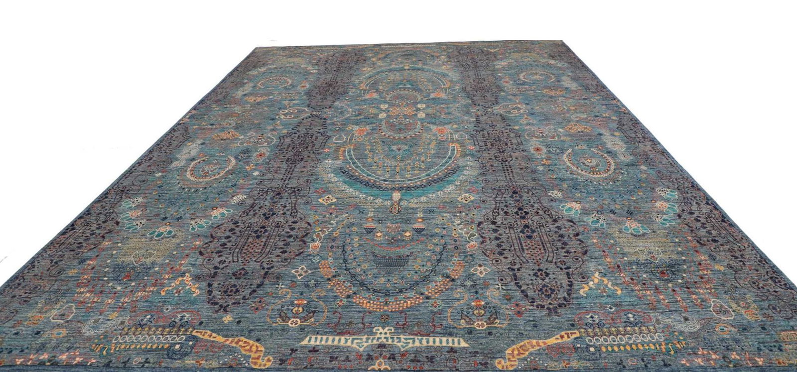 Samarkand Teppich | Knotendichte: ca. 300.000 Knoten/m² | Material: 100% Schurwolle | Größe: 303 x 392 cm | Zustand: Exzellente Handarbeit | Herkunft: Pakistan | Florhöhe: 5-7 mm | Kette: 100% Baumwolle | Muster: Modernes, orientalisches Design