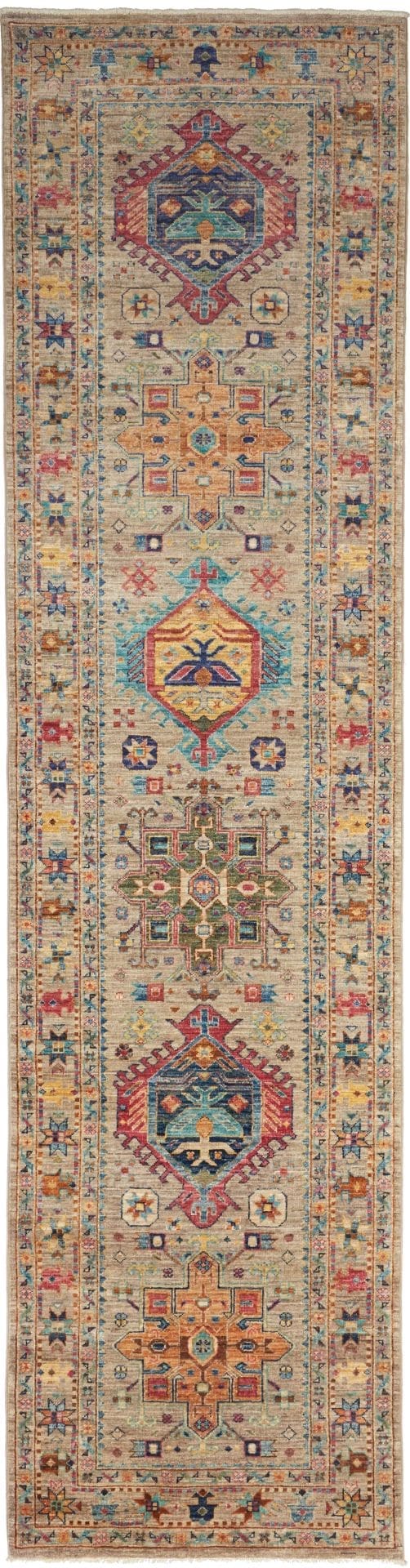 Samarkand Teppich | Knotendichte: ca. 200.000 Knoten/m² | Material: 100% Schurwolle | Größe: 81 x 304 cm | Herkunft: Pakistan | Verarbeitung: Handgeknüpft | Florhöhe: ca. 5-7 mm | Farbe: Farbiges, modernes Muster | Strapazierfähig und langlebig