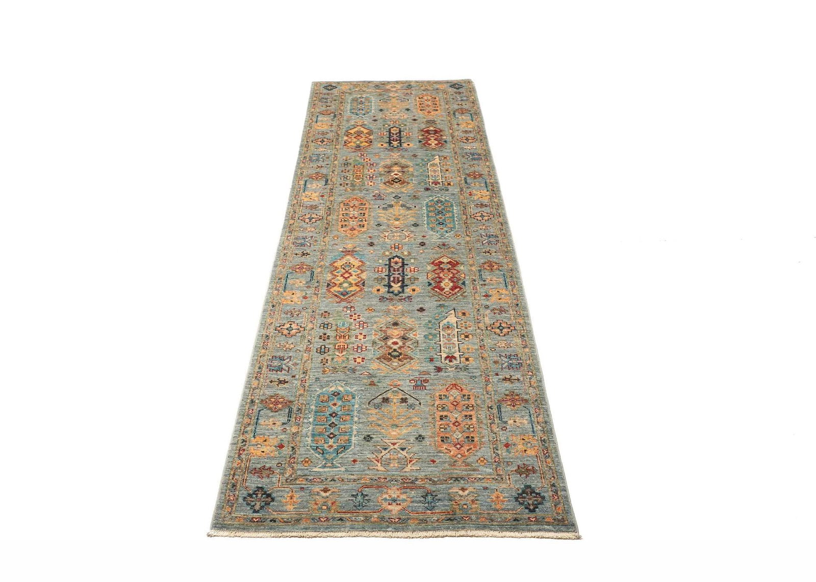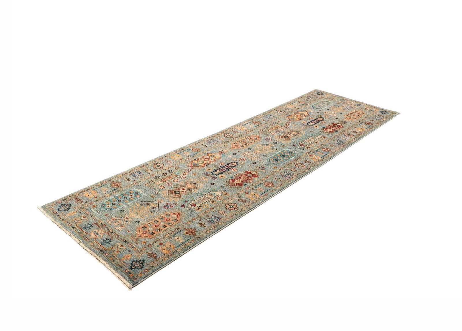 1916$Ursprünglicher Preis war: 1916$1694$Aktueller Preis ist: 1694$Samarkand Tribal Teppich | Knotendichte: ca. 200.000 Knoten/m² | Material: 100% Schurwolle | Größe: 82 x 259 cm | Kette aus 100% Baumwolle | Verarbeitung: Handgeknüpft | Herkunft: Pakistan | Zustand: Sehr gut