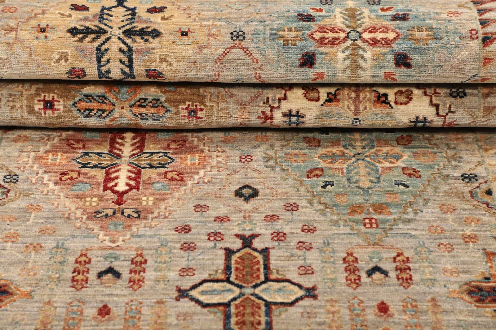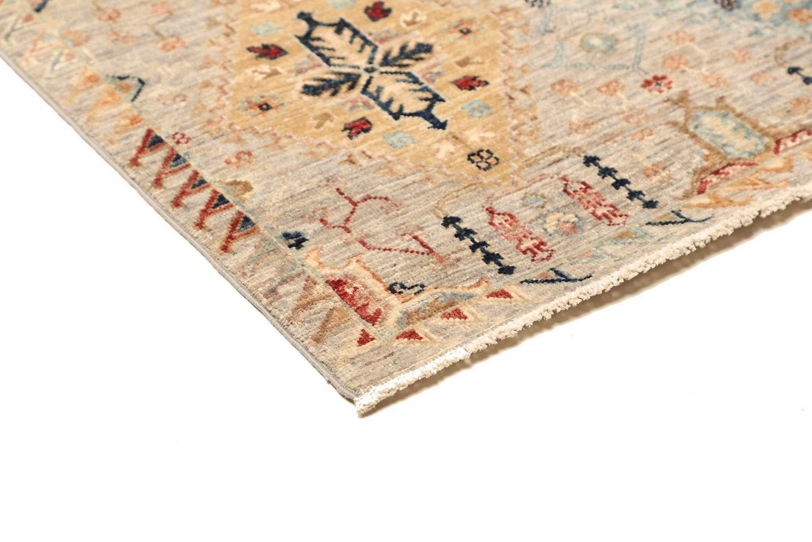 Die Verwendung von hochwertiger Schurwolle macht diesen Teppich besonders strapazierfähig und gleichzeitig weich und angenehm im Gefühl. Schurwolle zeichnet sich durch ihre natürliche Elastizität und Widerstandsfähigkeit aus, wodurch der Teppich auch nach Jahren noch in seiner vollen Pracht erstrahlt. Die handgeknüpfte Technik sorgt dafür, dass jeder Teppich ein Unikat ist – kein Muster gleicht dem anderen. Die Knotendichte dieses Orientteppichs ist überdurchschnittlich hoch, was für eine exzellente Qualität und Detailgenauigkeit in der Verarbeitung spricht. Diese Knotendichte beeinflusst nicht nur die Haltbarkeit, sondern auch die Farbbrillanz und die Ausstrahlung des Teppichs.