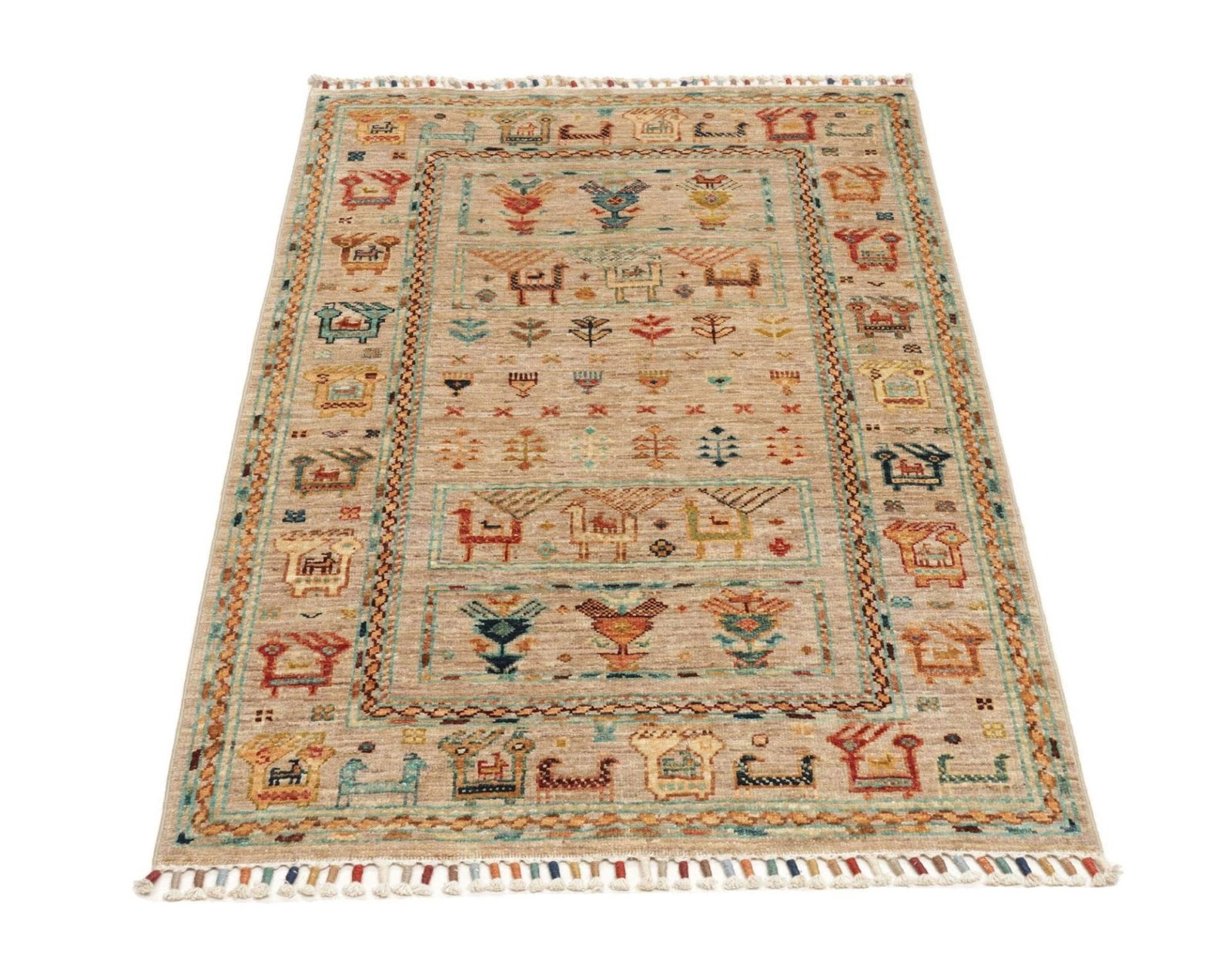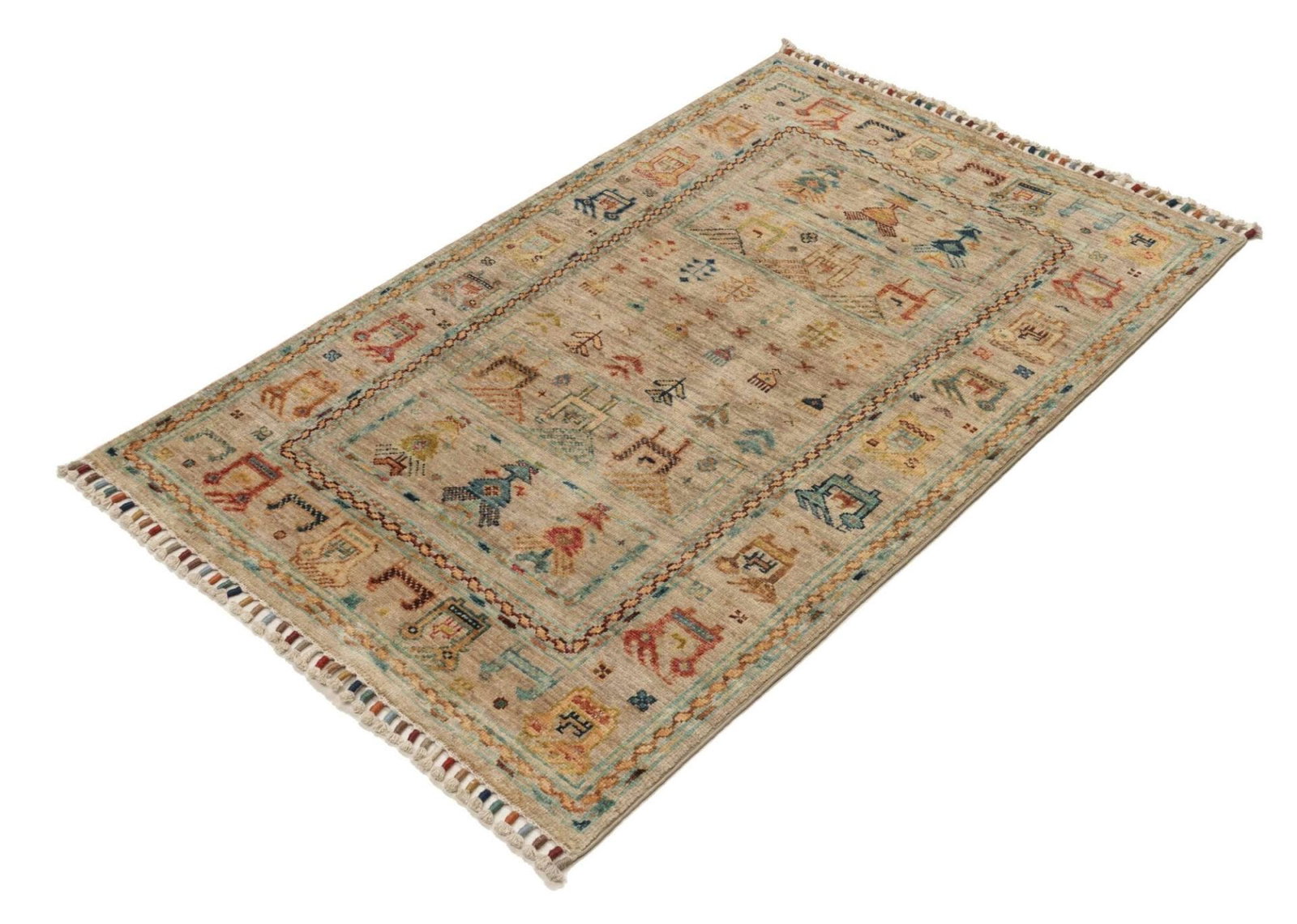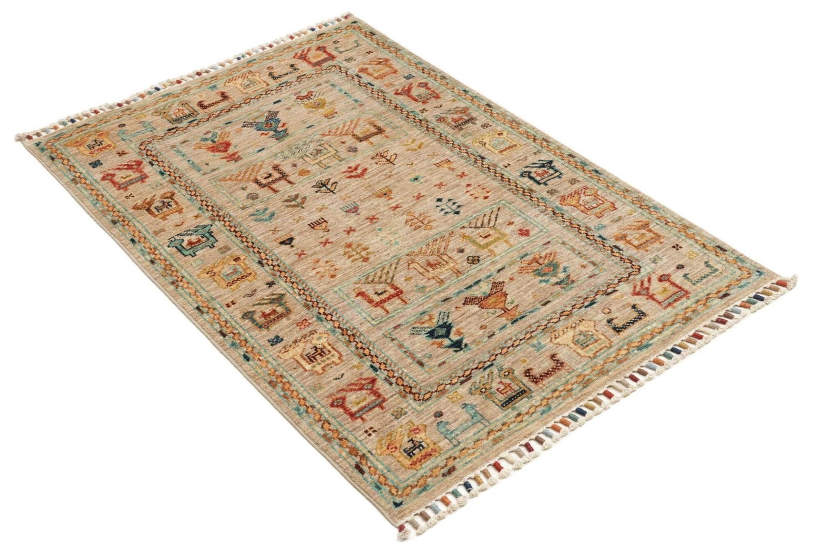 Samarkand Orientteppich 85 x 123cm, handgeknüpft, Wolle, bunt