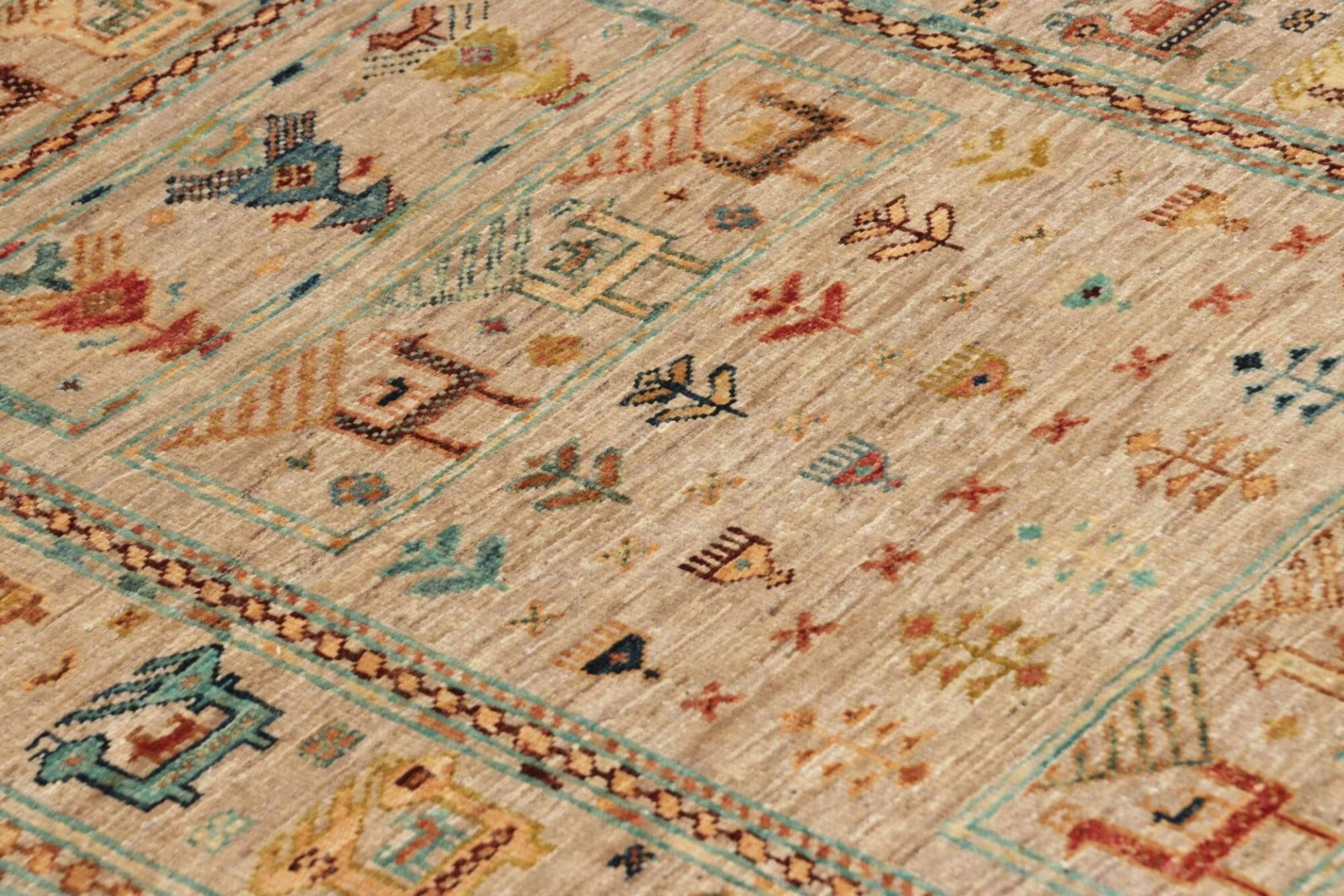 Der Orientteppich wurde aus 100 % Wolle gefertigt, einem Material, das für seine Strapazierfähigkeit und einzigartigen Eigenschaften bekannt ist. Wolle ist nicht nur warm und weich, sondern auch äußerst pflegeleicht. Die handgeknüpfte Technik sorgt dafür, dass jeder Teppich ein Unikat ist. Hier wird jeder Teil des Teppichs mit Sorgfalt und Hingabe erstellt, sodass ein einzigartiges Kunstwerk entsteht, das über Generationen hinweg geschätzt werden kann.