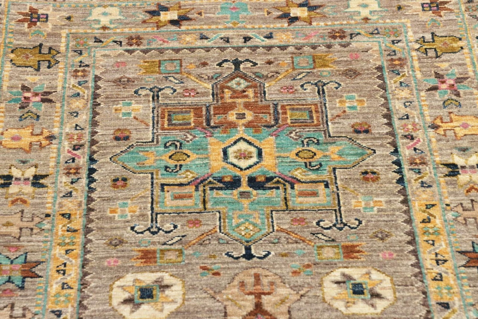Der Zustand des Teppichs ist hervorragend, was ihn zu einer wertvollen Ergänzung für jedes Zuhause macht. Die handgeknüpfte Technik sorgt dafür, dass jedes Detail des Designs sorgfältig und mit viel Hingabe umgesetzt wird – ein Qualitätsmerkmal, das man sieht und spürt.