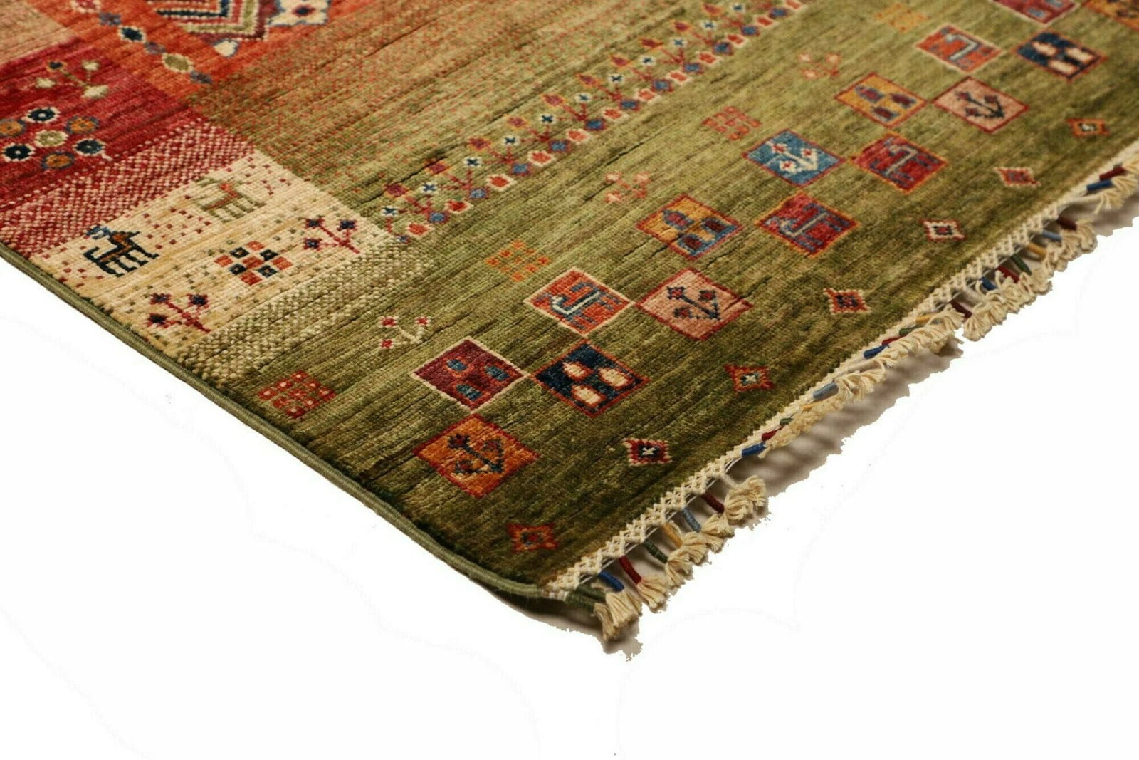 Dieser exquisite Orientteppich wird aus feiner Wolle hergestellt, die für ihre Weichheit und Haltbarkeit bekannt ist. Wolle ist ein ideales Material für Teppiche, da sie nicht nur über eine natürliche Isolierung verfügt, sondern auch schmutzabweisend und resistent gegen Ablagerungen ist. Die Handknüpfung verleiht diesem Teppich seine besondere Struktur und sorgt dafür, dass jedes Stück ein Unikat ist.