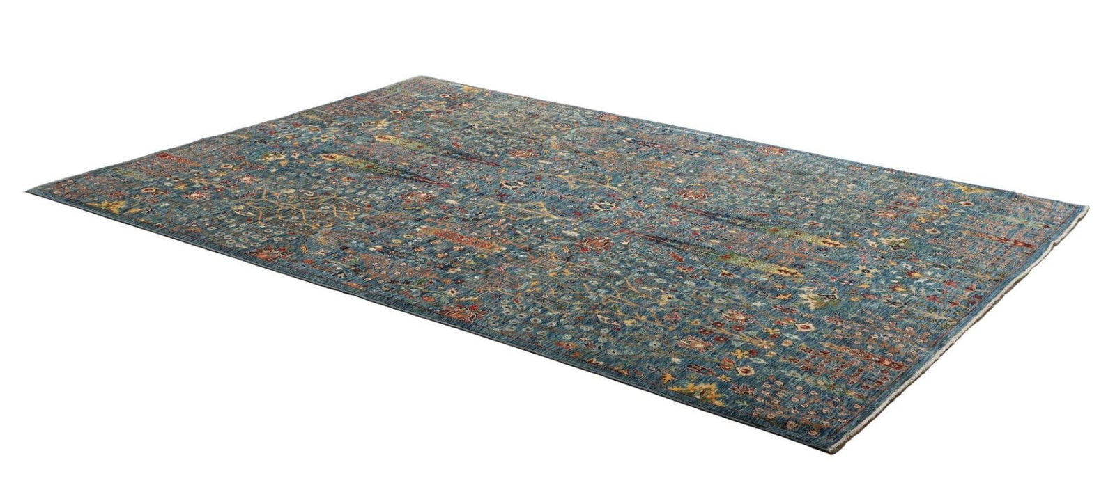 Die Muster des Samarkand Teppichs sind charakteristisch für die Region und zeigen oft eine harmonische Mischung aus traditionellem und modernem Design. Die Farben variieren von tiefen Rottönen über sanfte Blautöne bis hin zu erdigen Grün- und Beigetönen, die zusammen ein ansprechendes Gesamtbild ergeben. Diese Teppiche sind nicht nur funktional, sondern auch ungeheuer dekorativ und verleihen jedem Raum eine warme und einladende Atmosphäre.