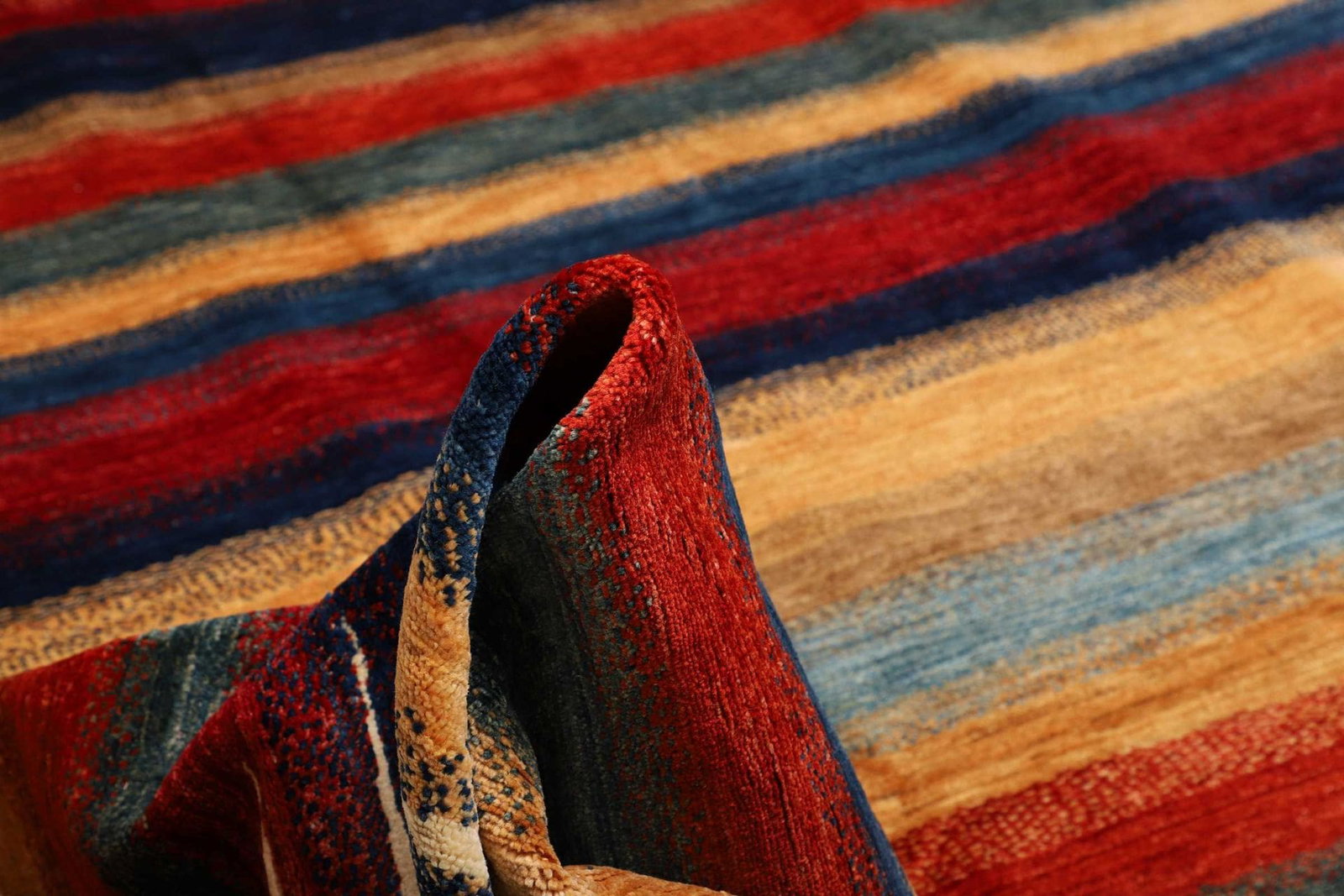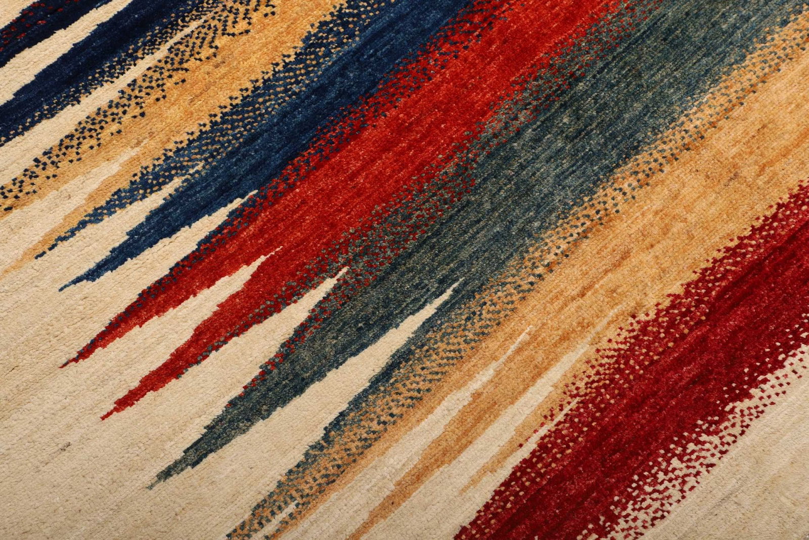 Mit seiner bunten Farbpalette ist der Samarkand Teppich nicht nur ein funktionales Element, sondern auch ein dekoratives Kunstwerk, das jedem Raum Charakter und Stil verleiht. Die Vielfalt an Farben und Mustern zieht alle Blicke auf sich und schafft eine warme, einladende Atmosphäre. Die Knotendichte dieses handgeknüpften Kunstwerks ist hoch, was auf die Präzision und die Fertigungstechnik hinweist, die in jedes Stück eingeflossen sind. Diese Knotendichte sorgt dafür, dass die Details der Muster lebendig werden und der Teppich einen luxuriösen und anspruchsvollen Eindruck vermittelt.