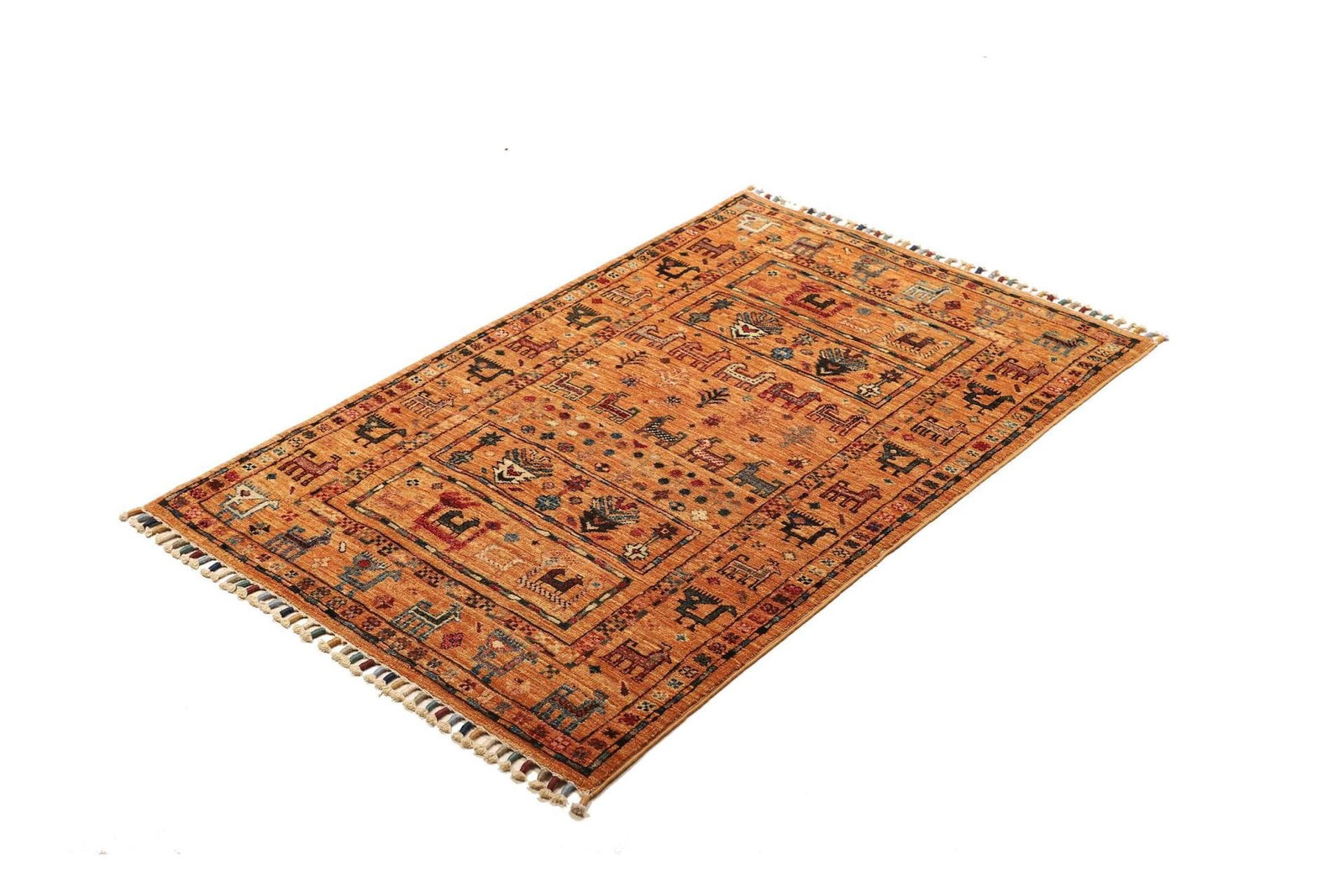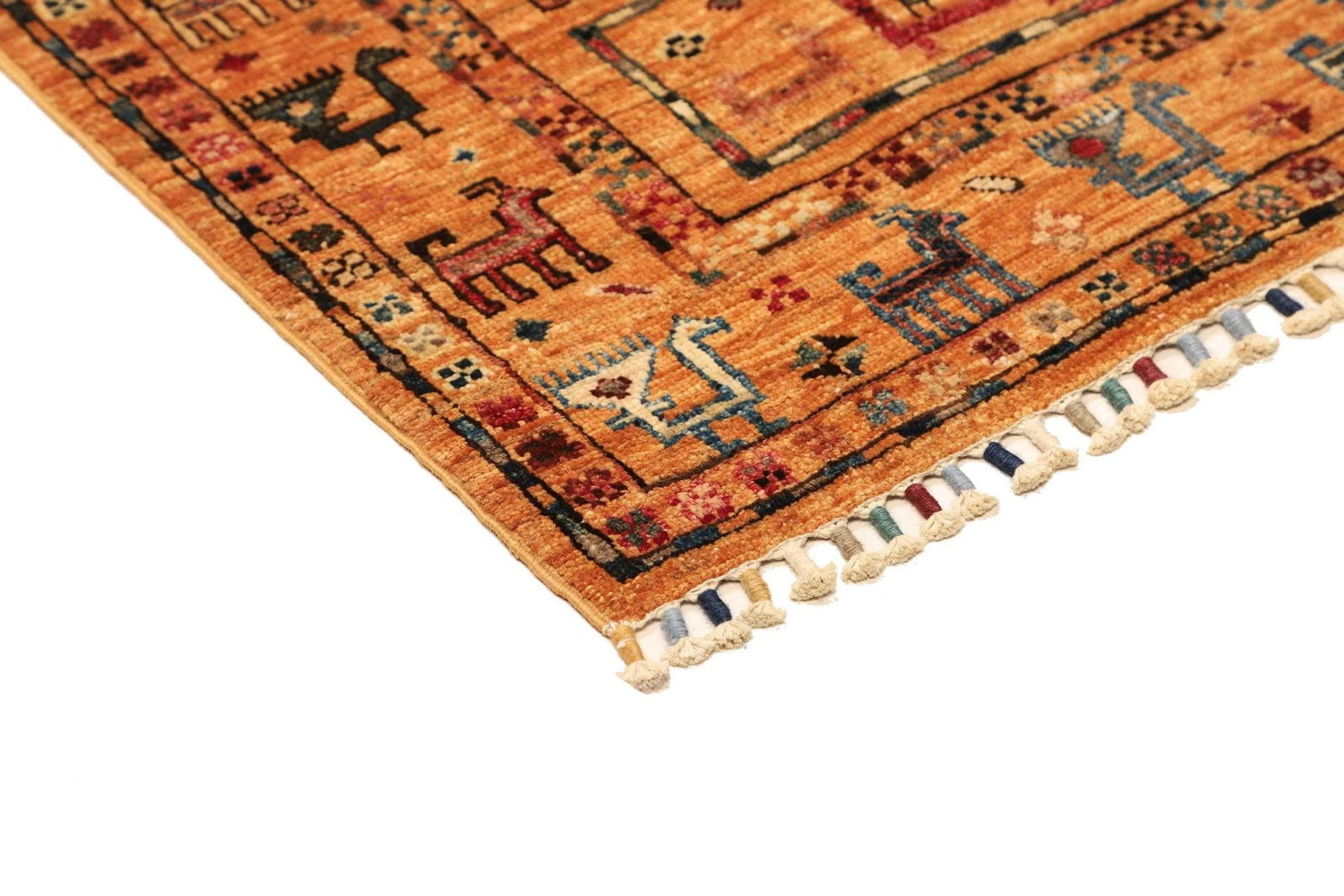 Handgeknüpfter Samarkand-Teppich | Knotendichte: ca. 200.000 Knoten/m² | Material: 100% Schurwolle | Größe: 83 x 123 cm | Herkunft: Pakistan | Höhenstruktur: ca. 5-7 mm | Kette aus 100% Baumwolle | Modernes, farbenfrohes orientalisches Muster | Hohe Strapazierfähigkeit und Langlebigkeit