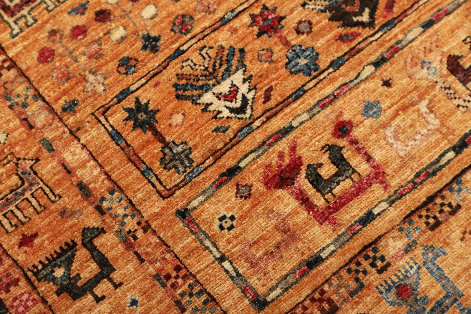 Die Schurwolle, die für diesen Teppich verwendet wird, zeichnet sich durch ihre natürliche Robustheit und Wärme aus. Diese Faser ist nicht nur umweltfreundlich, sondern sorgt auch für eine angenehme Haptik und ein gemütliches Raumklima. Die handgeknüpfte Technik ist ein Zeichen der Exklusivität und Unterstreicht die aufwendige Herstellung, die für orientalische Teppiche typisch ist. Die Knotendichte dieses Teppichs ist von höchster Qualität und sorgt dafür, dass die Farben lebendig bleiben und die Muster in ihrer vollen Pracht erstrahlen.