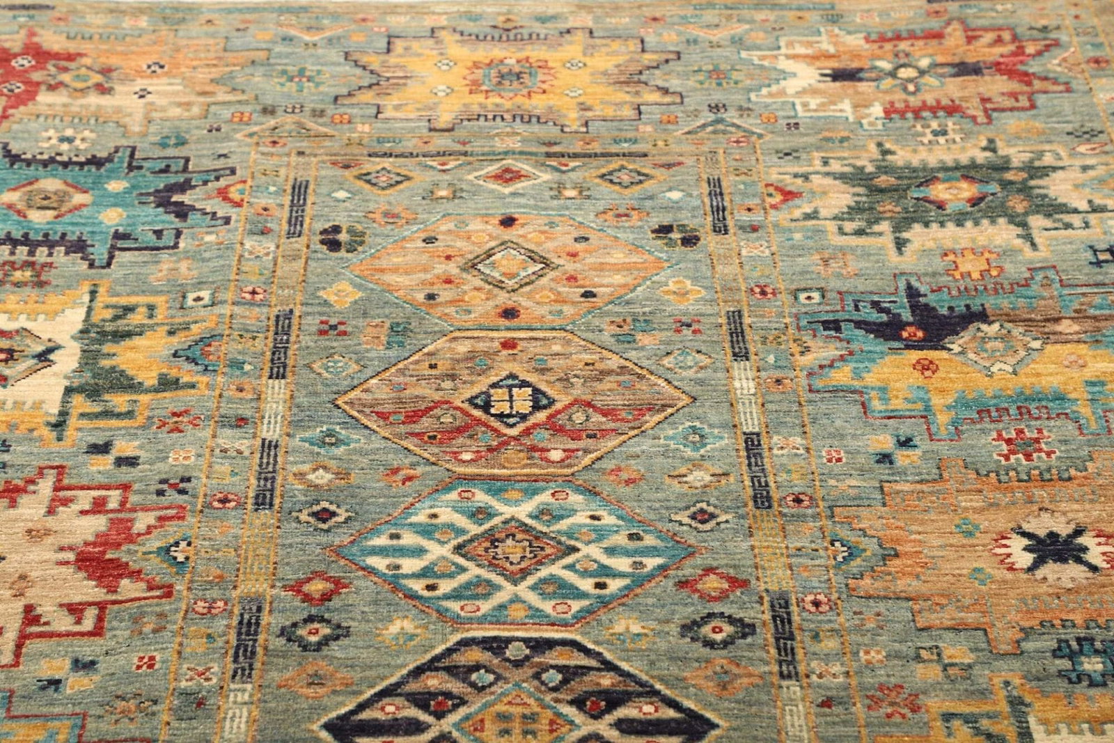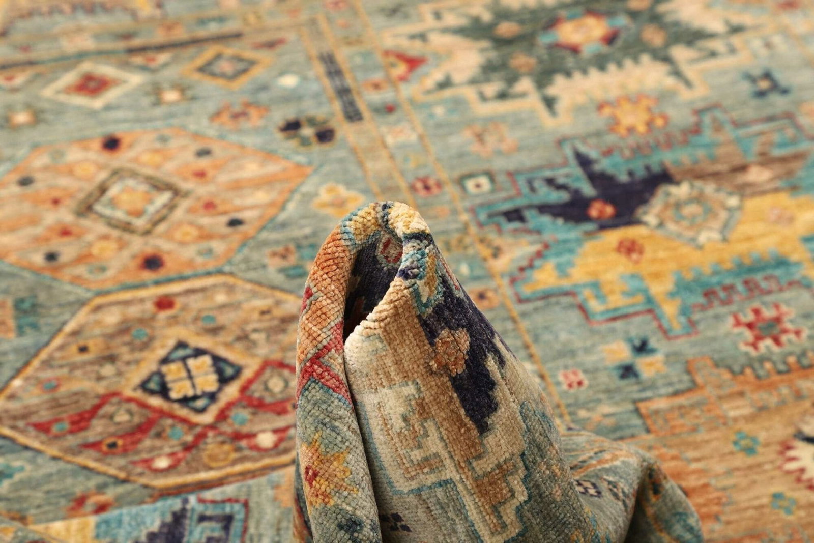 Der Samarkand Tribal wird aus hochwertiger Schurwolle gefertigt, die für ihre Strapazierfähigkeit und Weichheit bekannt ist. Diese natürliche Faser sorgt nicht nur für ein behagliches Wohnklima, sondern macht den Teppich auch pflegeleicht und langlebig. Das handgeknüpfte Verfahren bedeutet, dass jeder Teppich ein Unikat ist, da er mit viel Liebe zum Detail und traditioneller Handwerkskunst gefertigt wurde. Die Knotendichte dieses Teppichs sorgt für eine robuste Struktur, die Ihnen viele Jahre Freude bereiten wird.