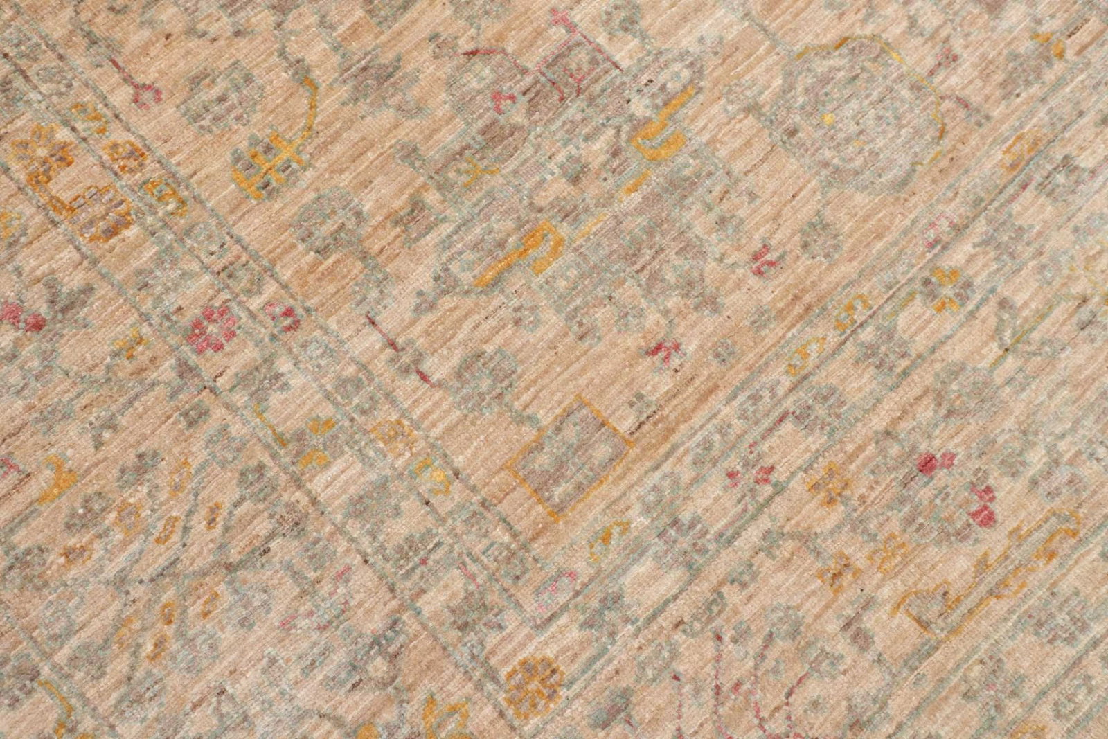 Die Muster sind nicht nur dekorativ, sondern haben auch eine symbolische Bedeutung, die oft Glück, Wohlstand und Fruchtbarkeit darstellt. Durch die Kombination von traditionellem Design und zeitloser Eleganz ist dieser Teppich eine hervorragende Wahl für eine Vielzahl von Einrichtungsstilen, von modern bis klassisch.