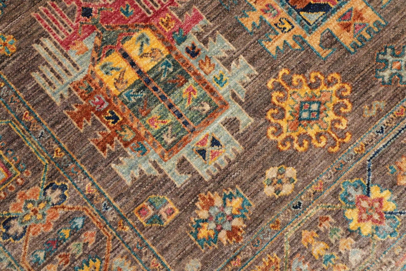 Dieser Teppich bietet nicht nur ästhetische Vorzüge, sondern auch praktische Vorteile. Die Schurwolle gewährleistet eine gewisse Wärmeisolierung und Geräuschdämmung, was ihn ideal für Wohnräume macht. Zudem ist der Teppich leicht zu reinigen, was ihn pflegeleicht macht und für Haushalte mit Kindern oder Haustieren geeignet ist. Die Handknüpfung garantiert, dass der Teppich eine hohe Langlebigkeit besitzt, sodass er über Jahre hinweg Freude und Nutzen schafft. Die Investition in einen Samarkand Tribal Teppich ist daher nicht nur eine ästhetische Entscheidung, sondern auch eine praktische.
