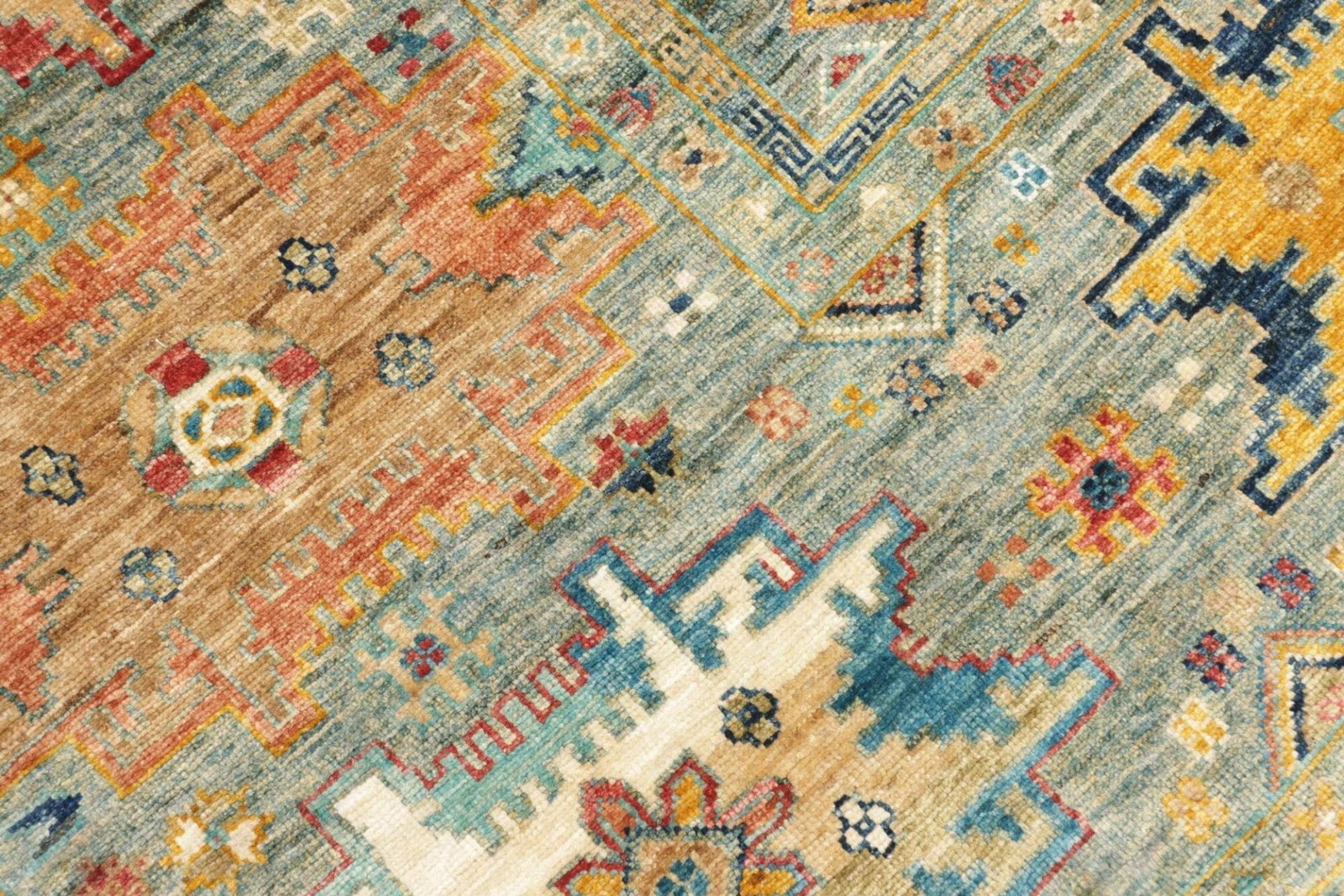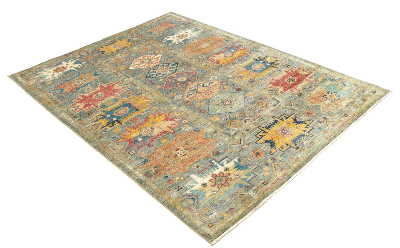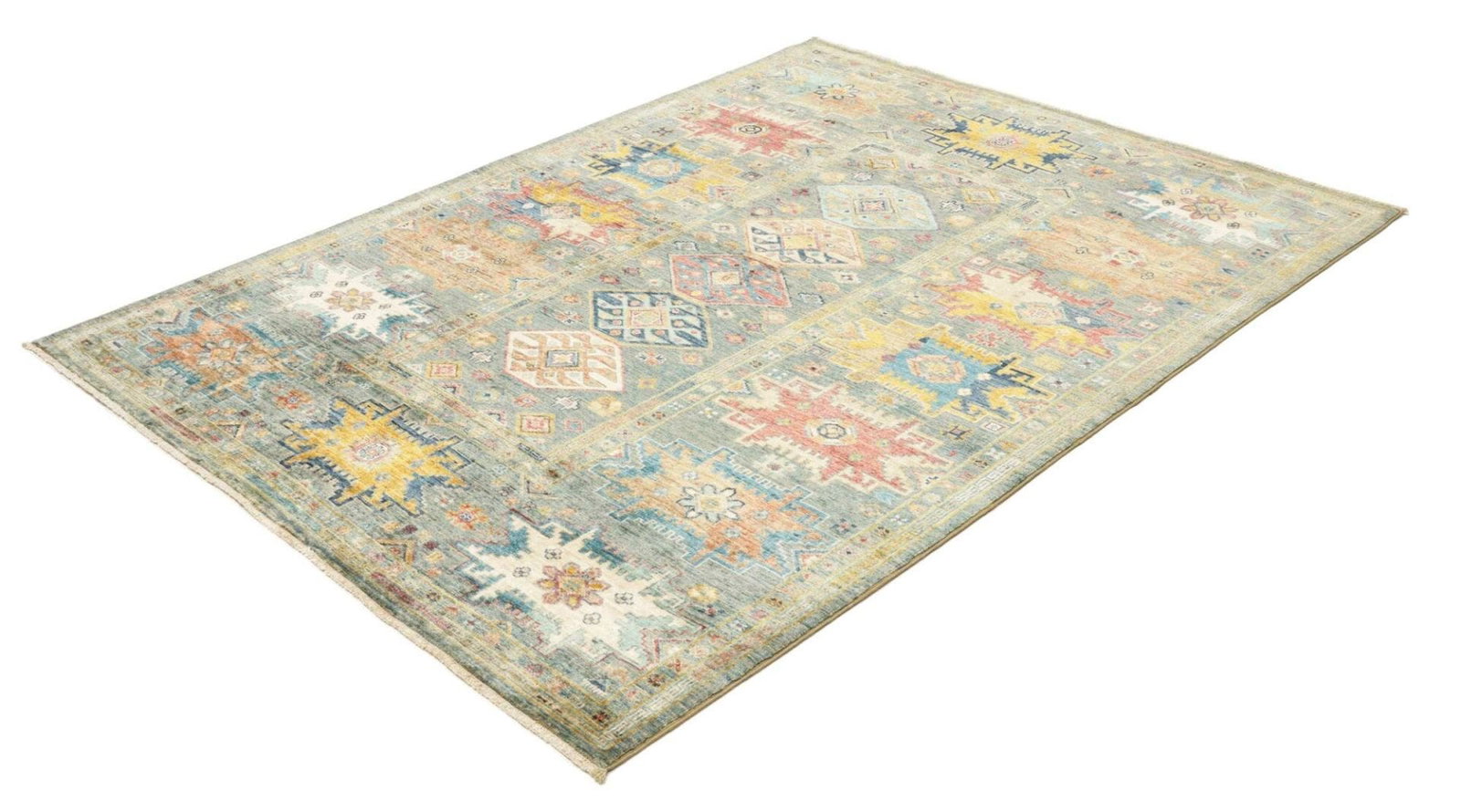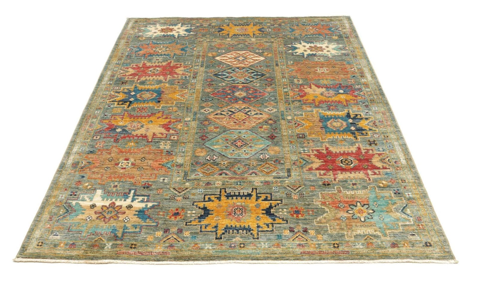 Die Farben des Teppichs sind in der Regel natürliche Farbtöne, die durch die Wolle und spezielle Färbetechniken erzielt werden, die oft Jahrhunderte alt sind. Der Teppich nutzt eine harmonische Palette aus Rot, Blau, Gelb und Erdtönen, wodurch er in jeder Umgebung ein echter Blickfang wird.