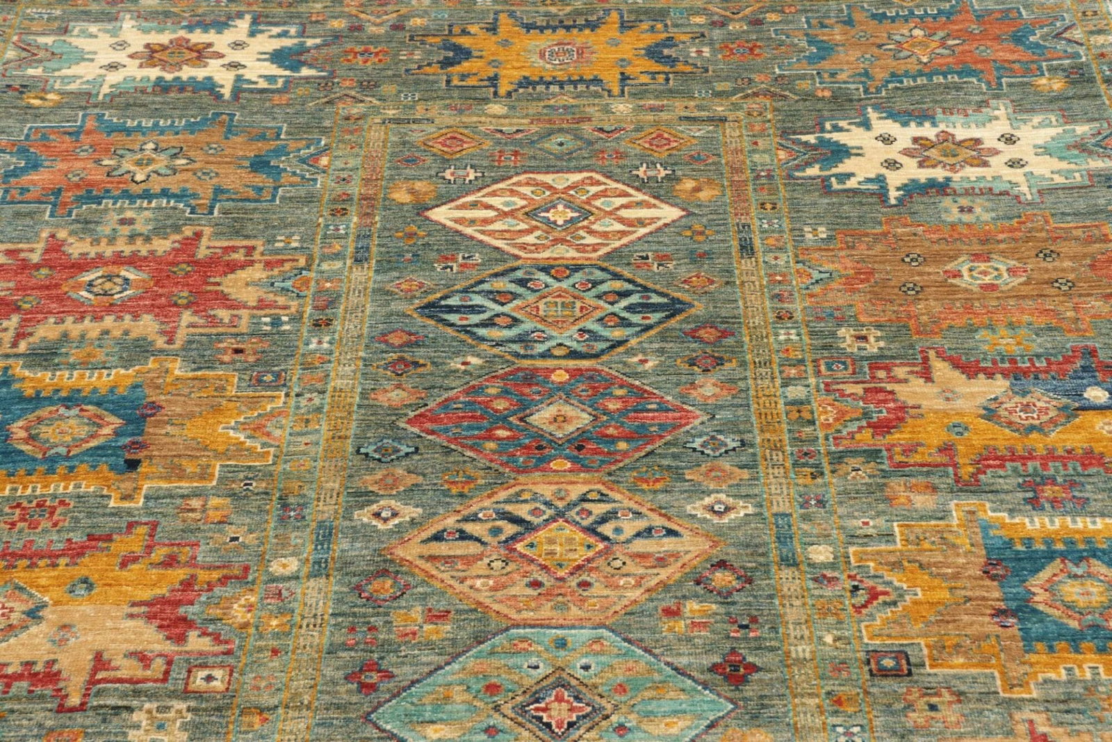 Hergestellt aus feiner Wolle, bietet der Samarkand Tribal Teppich eine hervorragende Weichheit und Langlebigkeit. Die natürliche Wolle sorgt dafür, dass der Teppich nicht nur angenehm zu Fuß ist, sondern auch eine ausgezeichnete Isolierung bietet. Die handgeknüpfte Technik garantiert eine hohe Knotendichte, die für diese Art von Teppichen typisch ist. Die Knotendichte sorgt nicht nur für die Langlebigkeit des Teppichs, sondern ermöglicht auch die detaillierte Ausarbeitung der Muster. Jeder Teppich ist ein Unikat und spiegelt die Liebe und Mühe wider, die in seine Herstellung eingeflossen sind.