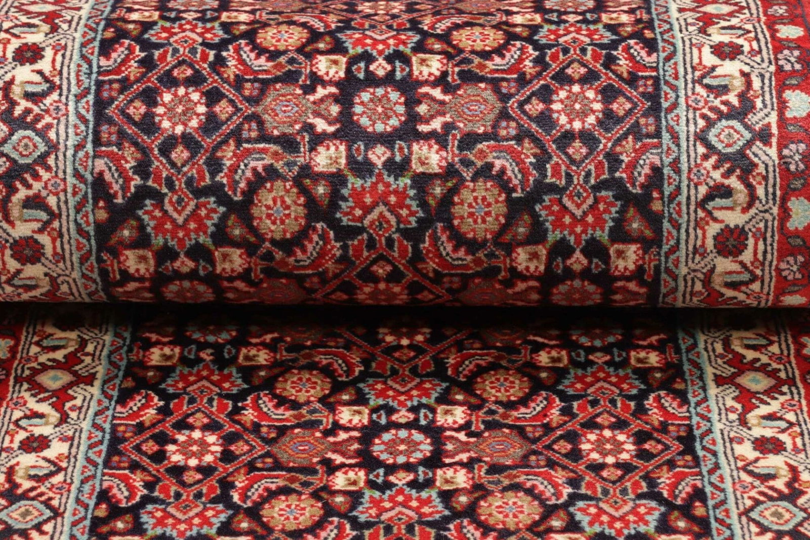 | Handgeknüpfter Sandjan Teppich | Knotendichte: ca. 400.000 Knoten/m² | Material: 100% Schurwolle (Flor), 100% Baumwolle (Kette) | Größe: 66 x 252 cm | Höhe: ca. 7-10 mm | Herkunft: Iran | Zustand: Ausgezeichnet | Aufwändige florale und geometrische Muster