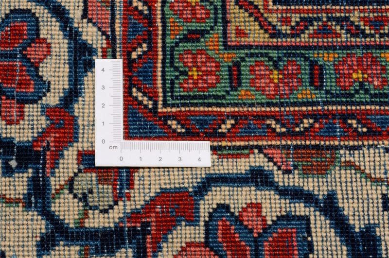 Achten Sie auf die Verarbeitung und die Knotendichte. Ein originaler Sarough Farahan Teppich wird in traditioneller Weise handgeknüpft und sollte eine hohe Knotenzahl pro Quadratmeter aufweisen. Auch die Verwendung hochwertiger Materialien ist ein Indikator für die Echtheit.