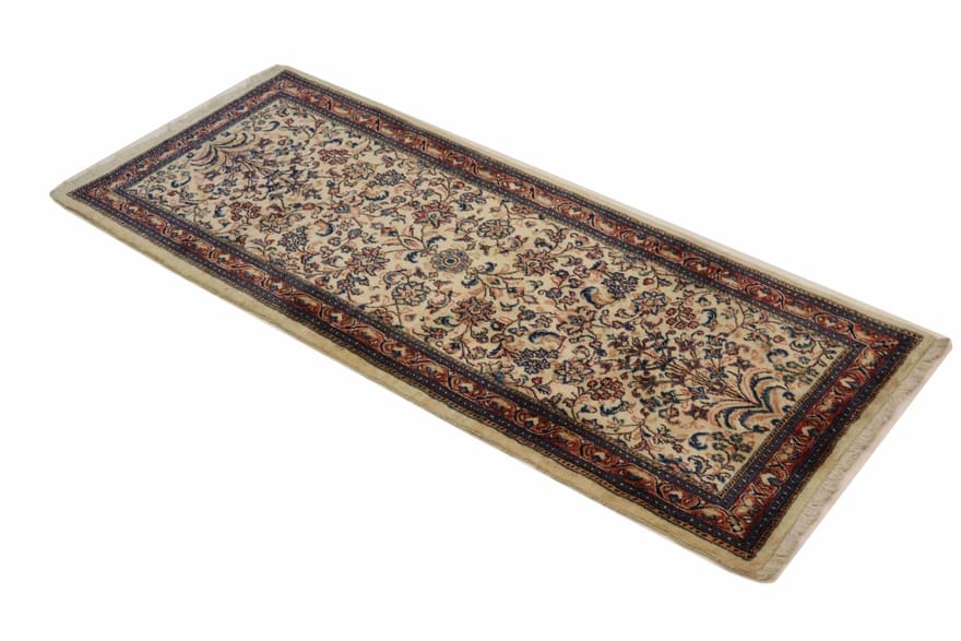 Handgeknüpfter Sarough Teppich | Knotendichte: 160.000 – 200.000 Knoten/m² | Material: Wolle (Flor), Baumwolle (Kette) | Größe: 204×83 cm | Farbe: Weiß/Beige | Zustand: Neuzeitlich, 0-20 Jahre | Ursprung: Iran/Persien | Form: Läufer | Dicke: ca. 10 mm | Gewicht: ca. 6 kg