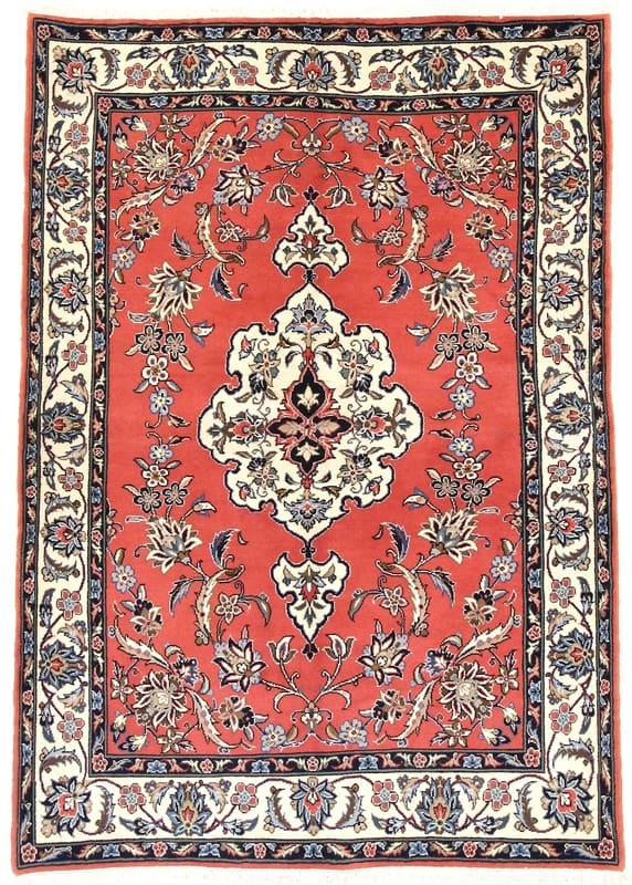 Sarough-Teppich | Knotendichte: 160.000 – 200.000 Knoten/m² | Material: Wolle (Flor), Baumwolle (Kette) | Größe: 207×143 cm | Farbe: Rot/Orange | Herkunft: Iran/Persien | Zustand: Neuzeitlich (0-20 Jahre) | Verarbeitung: Handgeknüpft | Gewicht: ca. 10 kg | Dicke: ca. 10 mm