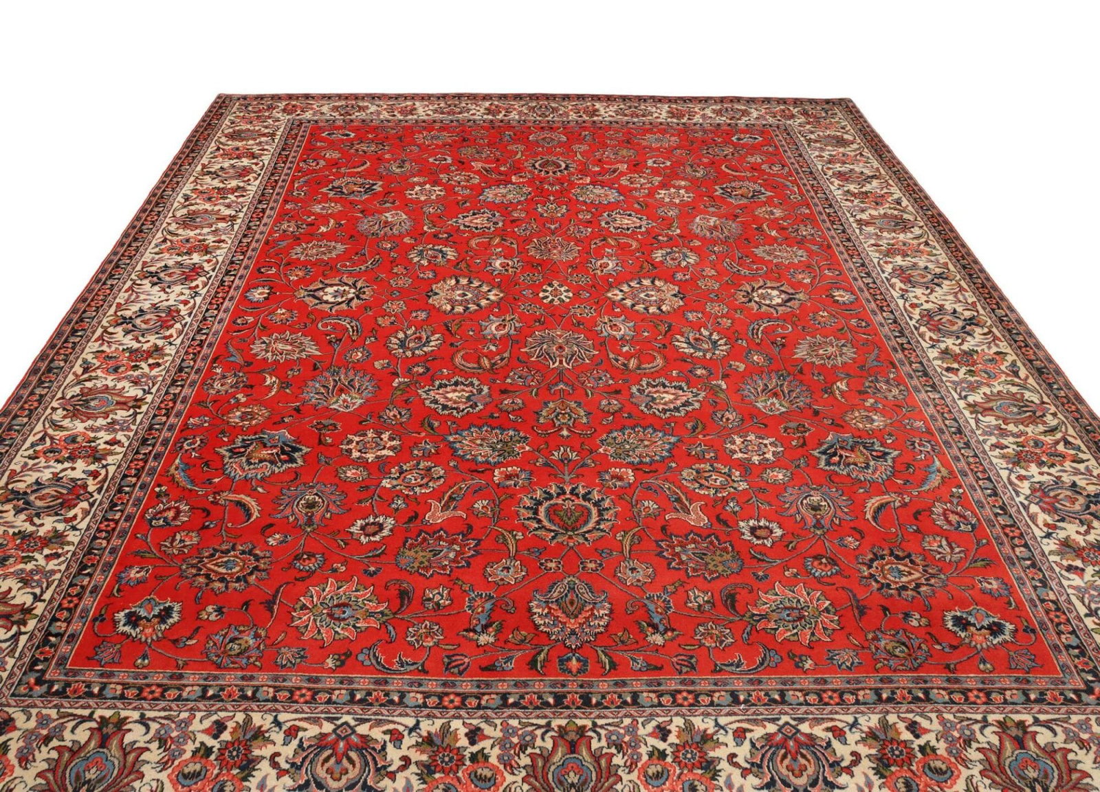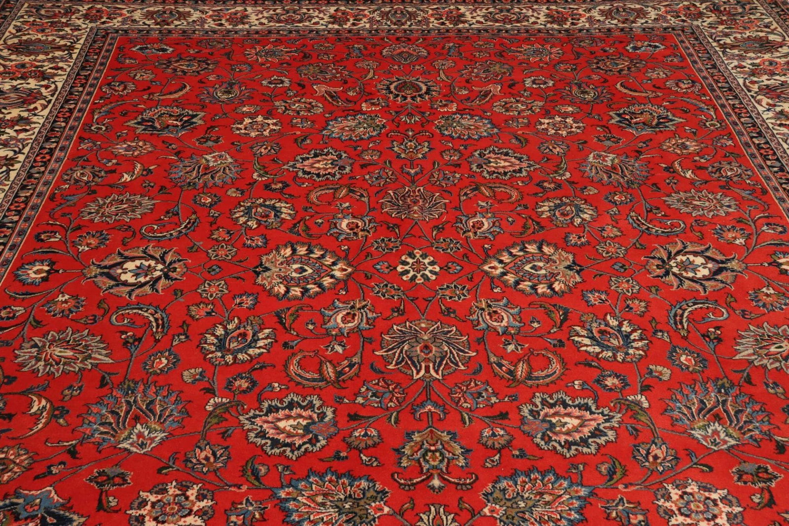 3148$Ursprünglicher Preis war: 3148$2643$Aktueller Preis ist: 2643$| Sarough Teppich | Knotendichte: ca. 200.000 Knoten/m² | Material: 100% Schurwolle (Flor), 100% Baumwolle (Kette) | Größe: 303 x 380 cm | Höhe: ca. 7-10 mm | In ausgezeichnetem Zustand | Herkunft: Iran | Handgeknüpft | Exklusive Pflanzenfärbung | Traditionelles florales und geometrisches Muster |