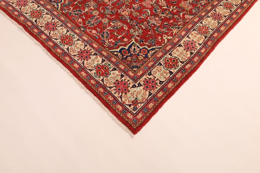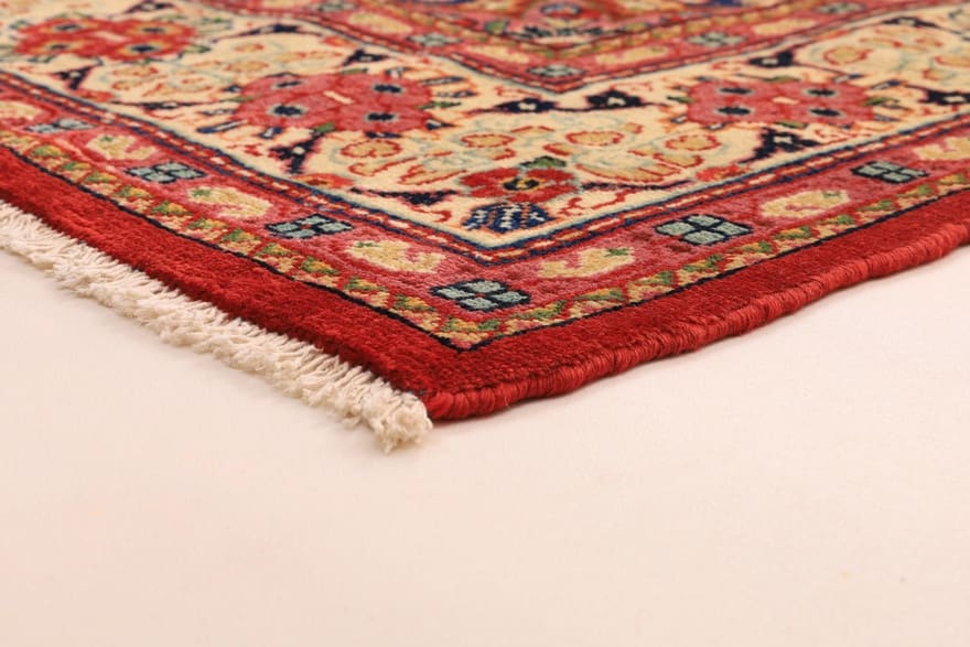 Die Qualität eines Sarough Teppichs lässt sich vor allem durch die Knotendichte und die Verarbeitung der Materialien beurteilen. Achten Sie auf eine feine, gleichmäßige Knüpfung und robuste Wollfasern, die auch nach Jahren der Nutzung ihre Form und Farben behalten werden.