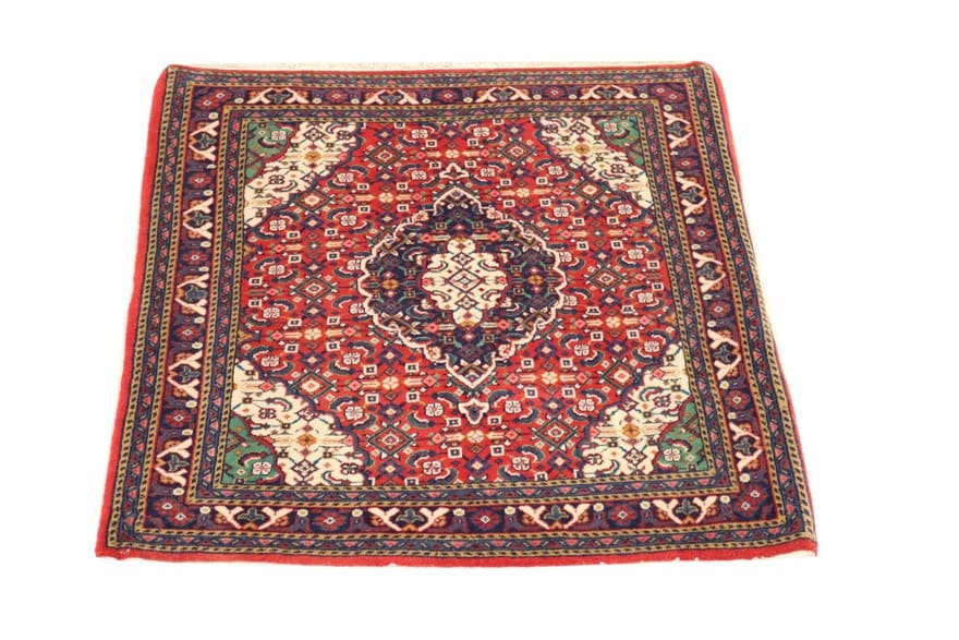 Neu | Traditioneller Sarough Teppich | Knotendichte: 200.000 – 250.000 Knoten/m² | Material: Handgesponnene Wolle und Baumwolle | Farbe: Rot/Orange | Größe: 82×69 cm | Zustand: Neu | Herkunft: Iran/Persien | Verarbeitung: Handgeknüpft