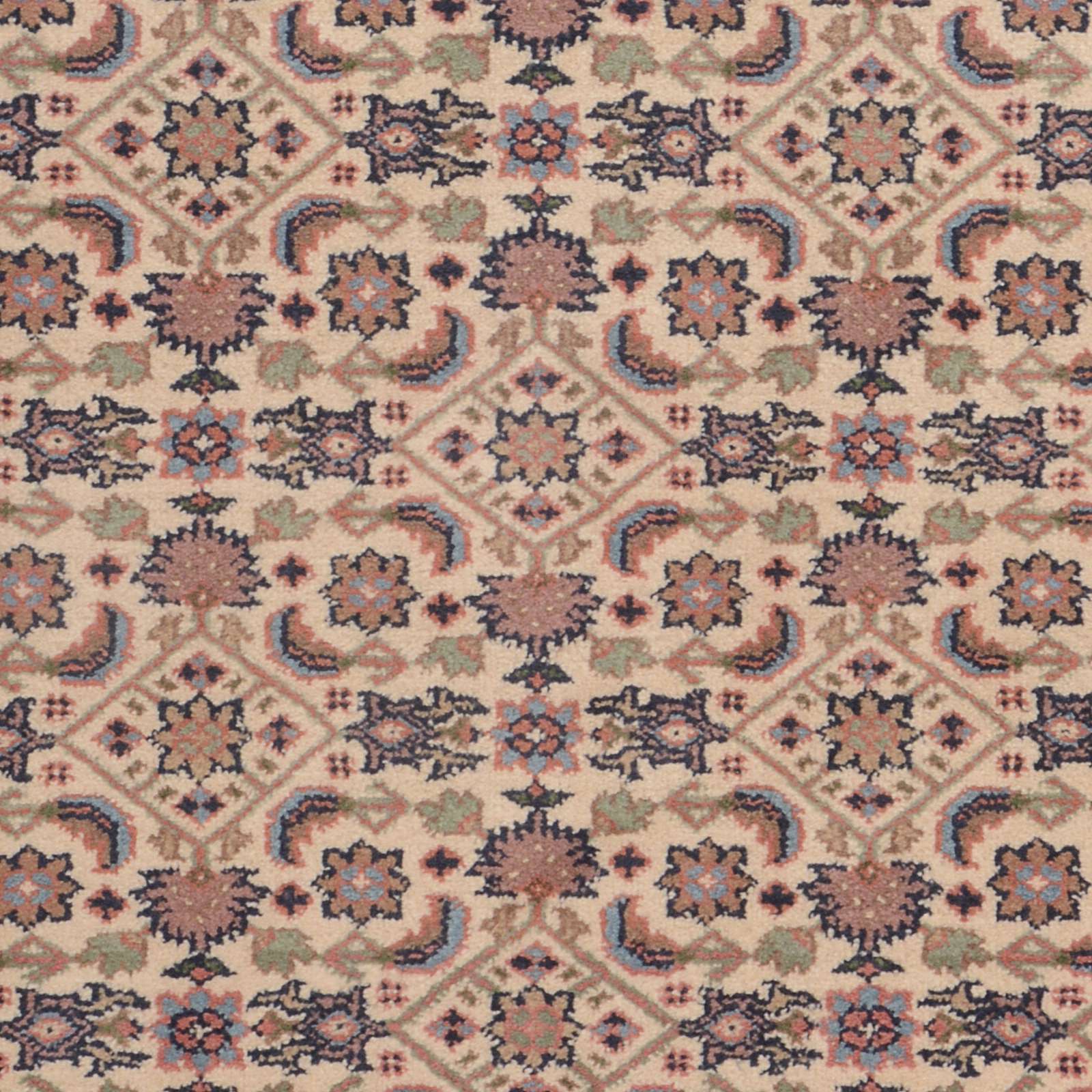 Handgeknüpfte Teppiche wie der Sarouk bestehen typischerweise aus hochwertigen Naturfasern, darunter Wolle und Baumwolle, die für ihre Langlebigkeit und Farbbrillanz bekannt sind. Die Knotendichte spielt eine entscheidende Rolle in der Qualität eines Teppichs; bei diesem Sarouk beträgt sie mehr als durchschnittliche Werte – ein Zeichen für die detaillierte und kunstvollen Verarbeitung.