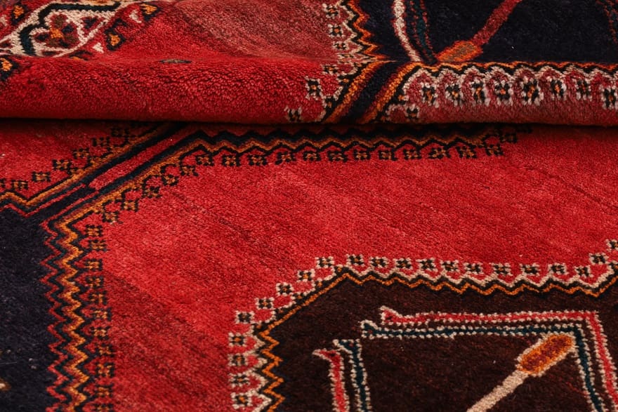 Schiraz Teppich | Knotendichte: 128.000 – 160.000 Knoten/m² | Material: 100% Wolle (Kette, Schuss, Flor) | Größe: 291×163 cm | Farbe: Rot/Orange | Zustand: Neuzeitlich (0-20 Jahre) | Verarbeitung: Handgeknüpft | Ursprung: Iran / Persien | Gewicht: ca. 16 kg | Dicke: ca. 10 mm