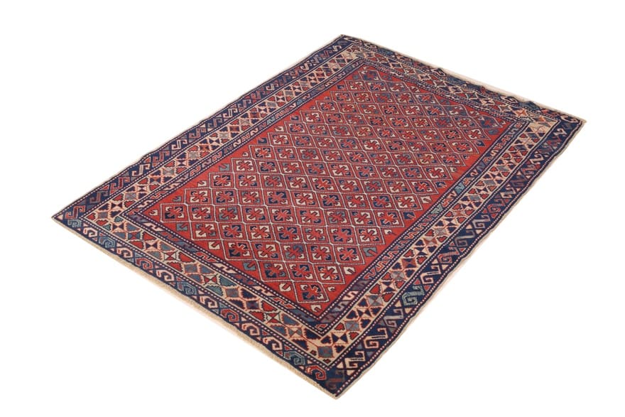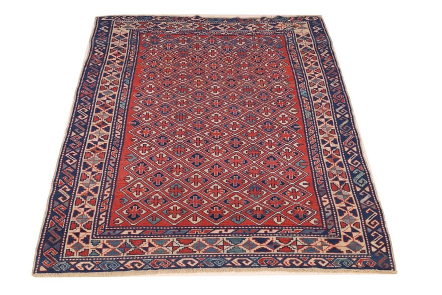 Antiker Schirvan Teppich | Knotendichte: 128.000-160.000 Knoten/m² | Material: Handgeknüpfte Wolle und Baumwolle | Größe: 156×110 cm | Farbe: Rot/Orange | Zustand: Gut | Ursprung: Russland