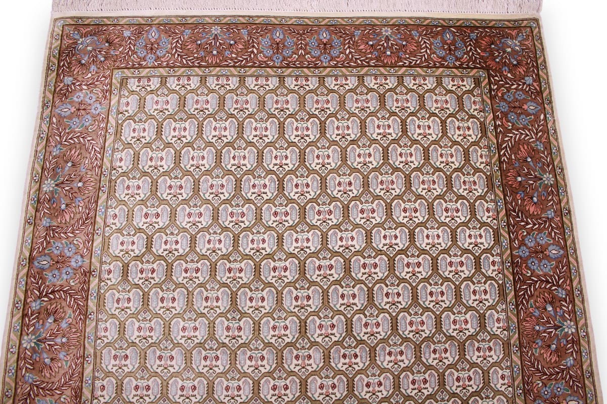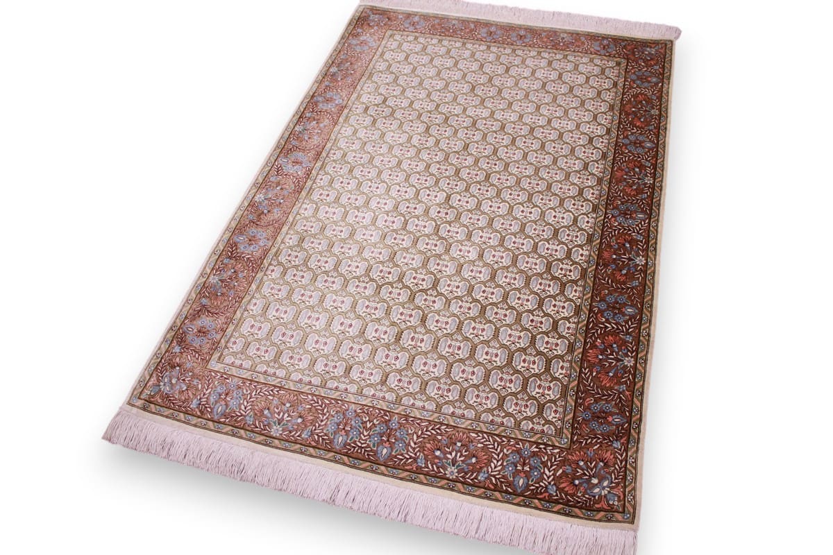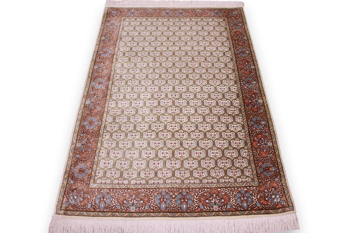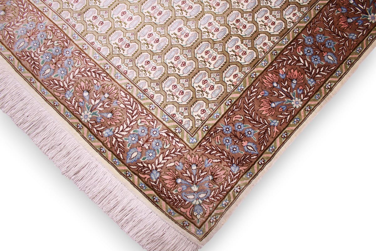 Seiden Teppich Ghom 122×81 cm Beige, Naturfarben, handgeknüpft
