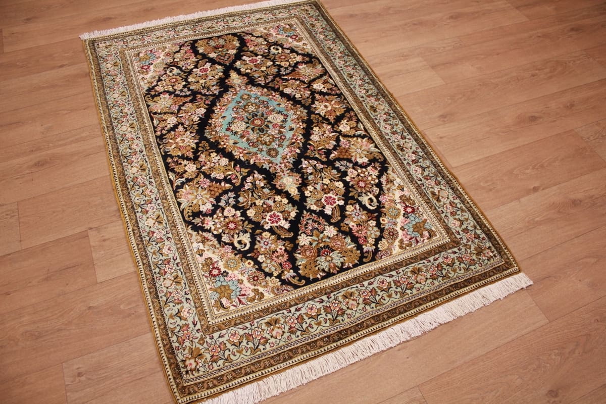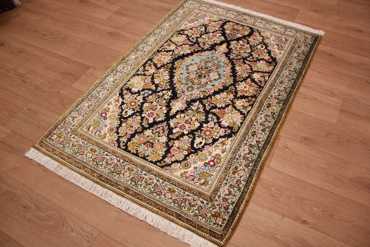 Ghom Teppich 217×139 cm, 100% Seide, handgeknüpft, Orientteppich