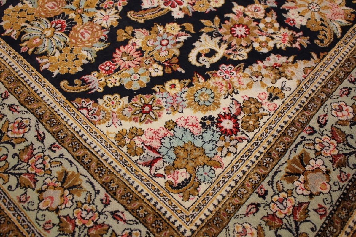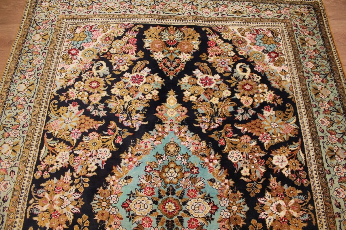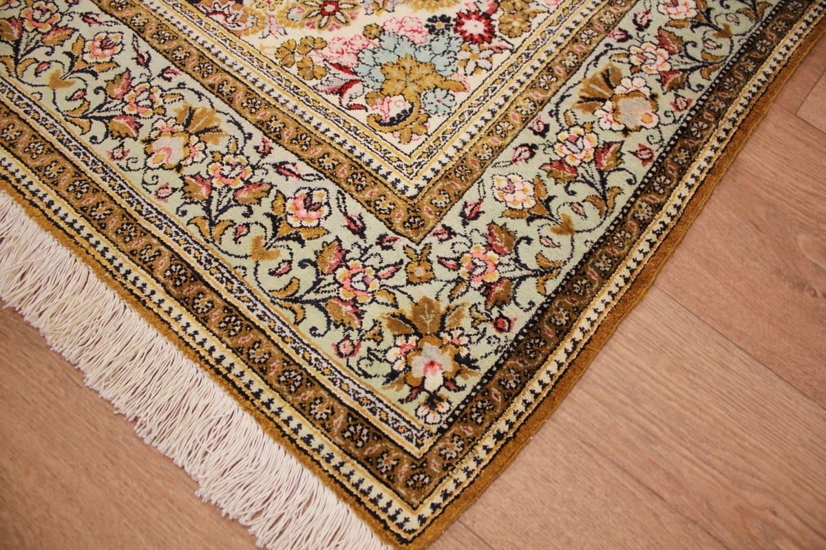 Der Teppich besteht, wie der Name bereits verrät, aus hochwertiger Seide, die für ihre Langlebigkeit und ihren luxuriösen Glanz bekannt ist. Seidenteppiche sind nicht nur weich und angenehm unter den Füßen, sondern sie strahlen auch Eleganz aus, was sie zu einem Highlight in jedem Raum macht. Die handgeknüpfte Technik sorgt dafür, dass jedes Stück ein Unikat ist und mit viel Liebe zum Detail hergestellt wurde. Durch die hohe Knotendichte erzielt dieser Teppich eine feine Struktur, die die Schönheit der Motive optimal zur Geltung bringt.
