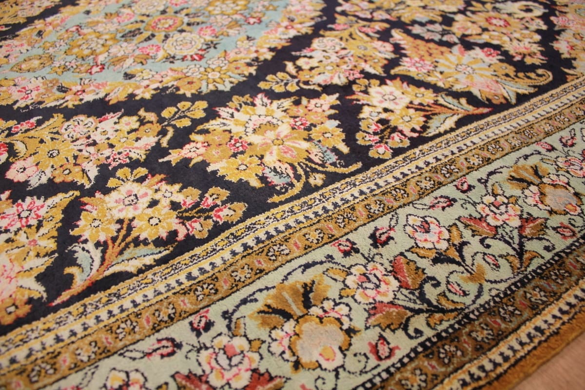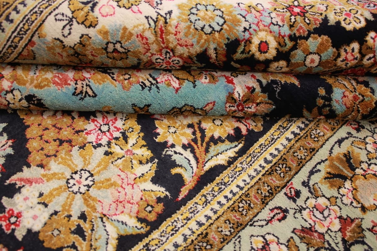 Ein weiterer Vorteil von Seidenteppichen ist ihre Fähigkeit, Licht auf unterschiedliche Weise zu reflektieren. In Abhängigkeit von der Lichtquelle und dem Blickwinkel können die Farben des Teppichs variieren, was ihm eine dynamische Ausstrahlung verleiht. Darüber hinaus sind die handgeknüpften Teppiche nicht nur wunderschön, sondern auch extrem haltbar, wenn sie ordnungsgemäß gepflegt werden. Zeigen Sie Ihren Gästen dieses Meisterwerk, und sie werden beeindruckt sein von der exquisiten Kunstfertigkeit und der zeitlosen Schönheit, die in diesem Teppich steckt.