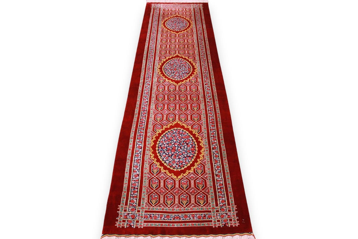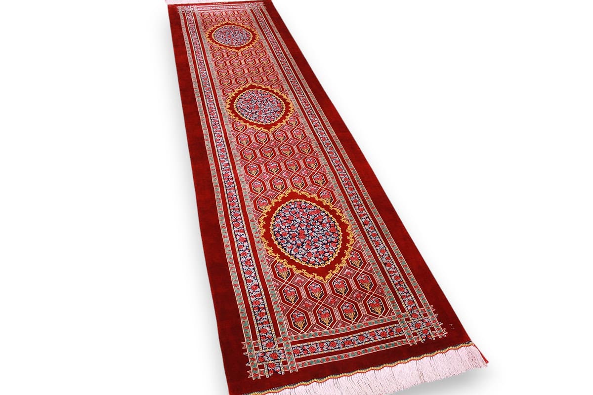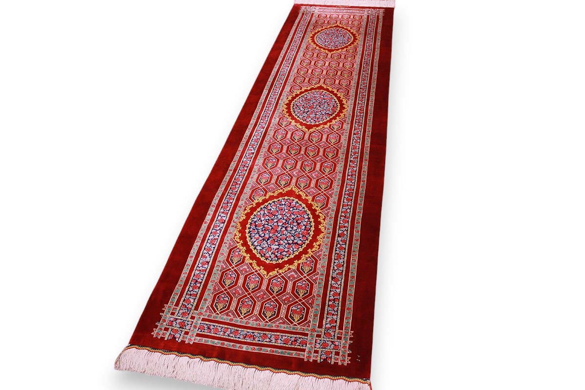 Holen Sie sich mit dem Seidenteppich Läufer Ghom ein Stück iranischer Kultur in Ihr Zuhause und genießen Sie die Eleganz eines handgeknüpften Kunstwerks, das sowohl Tradition als auch modernen Stil vereint.