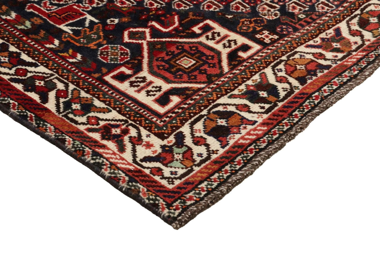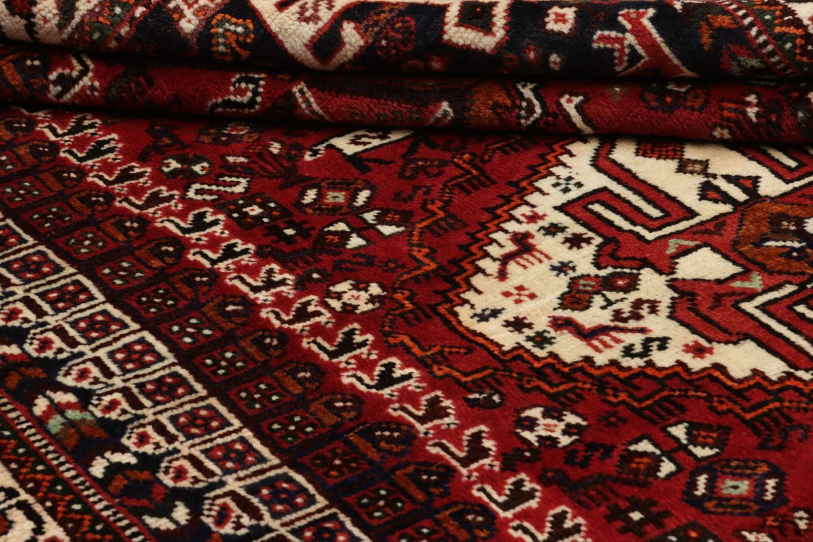 Ein besonders hervorzuhebendes Merkmal unseres handgeknüpften Shiraz Orientteppichs ist seine Knotendichte, die eine gleichmäßige und langlebige Qualität ermöglicht. Diese hohe Knotendichte bedeutet, dass der Teppich nicht nur schön aussieht, sondern auch den Anforderungen des Alltags standhält. Wolle ist zudem ein natürlicher Isolator, was diesen Teppich ideal für verschiedene Jahreszeiten macht.