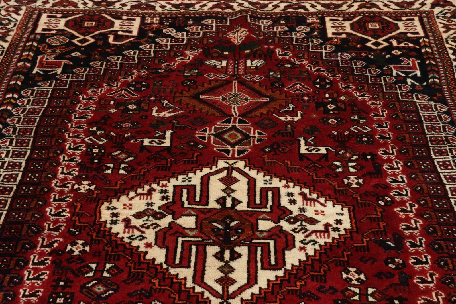Der Shiraz Teppich stammt aus der gleichnamigen Region im Iran, die für ihre lebendigen Teppichdesigns und hohen Qualitätsstandards berühmt ist. Shiraz ist eine Stadt mit einer reichen Geschichte und Kultur, bekannt für ihre Poeten und ihre Weinkultur. Die Teppichproduktion in dieser Region blickt auf eine jahrhundertealte Tradition zurück und ist eng mit den Lebensweisen und Traditionen der Menschen vor Ort verbunden. Teppiche aus Shiraz sind oft von Farben und Mustern geprägt, die Geschichten aus der Region erzählen.