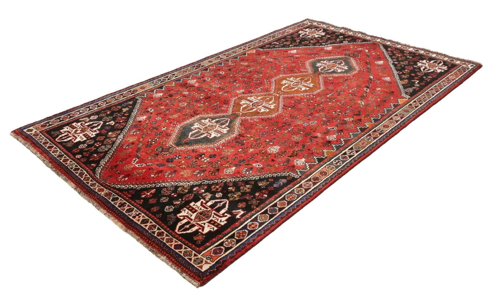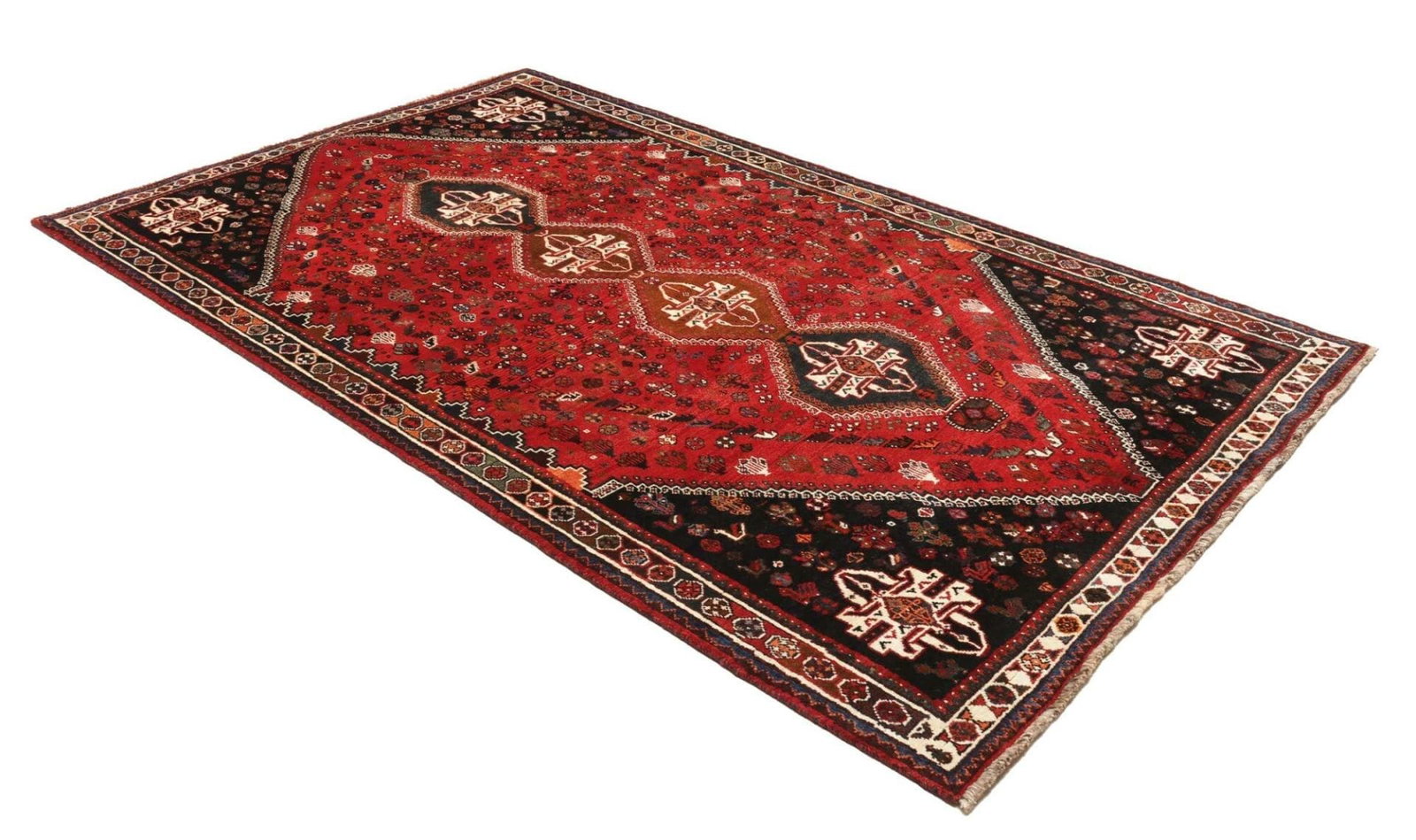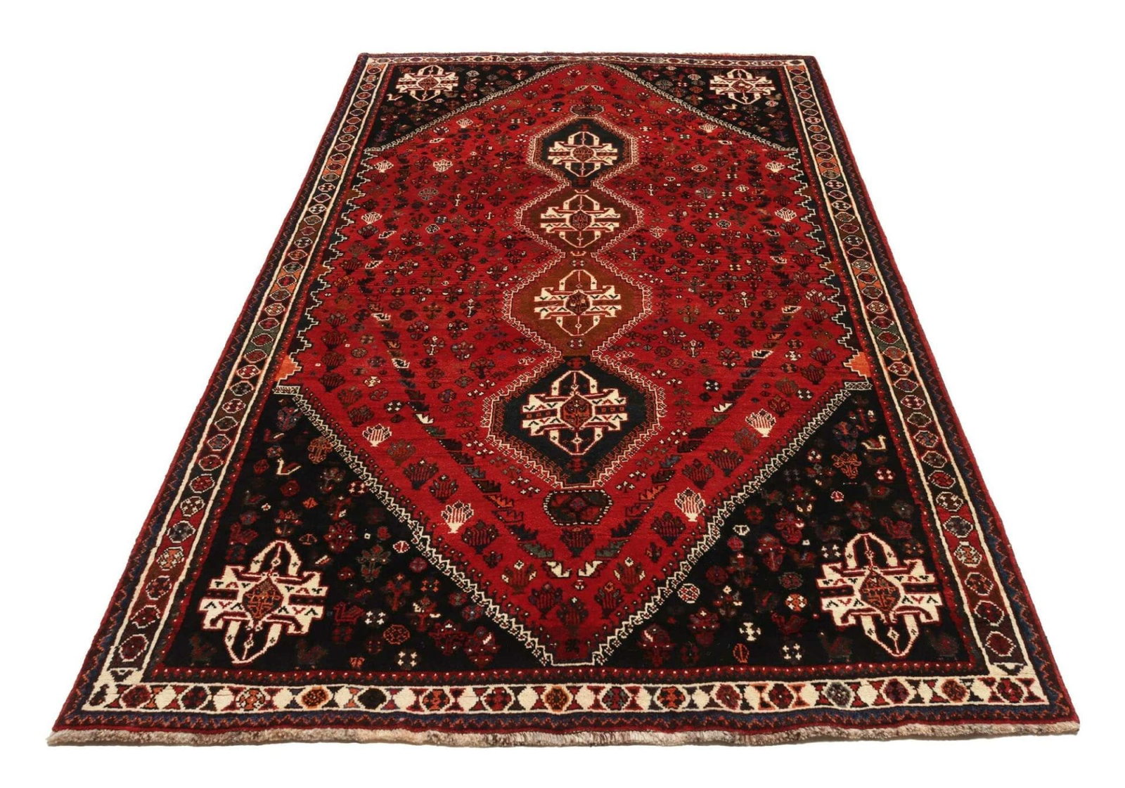 Shiraz Teppich | Größe: 166 x 275 cm | Knotendichte: ca. 200.000 Knoten/m² | Material: 100% Schurwolle (Flor), 100% Baumwolle (Kette) | Herkunft: Iran | Verarbeitung: Handgeknüpft | Muster: Geometrisch und traditionell | Höhe: ca. 7-10 mm | Zustand: Ausgezeichnet