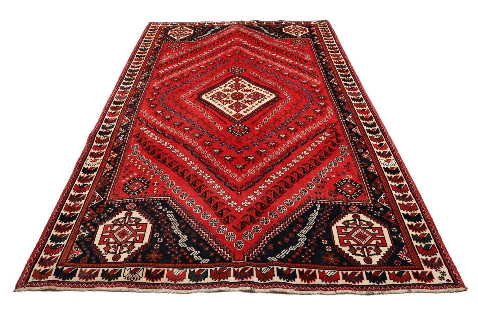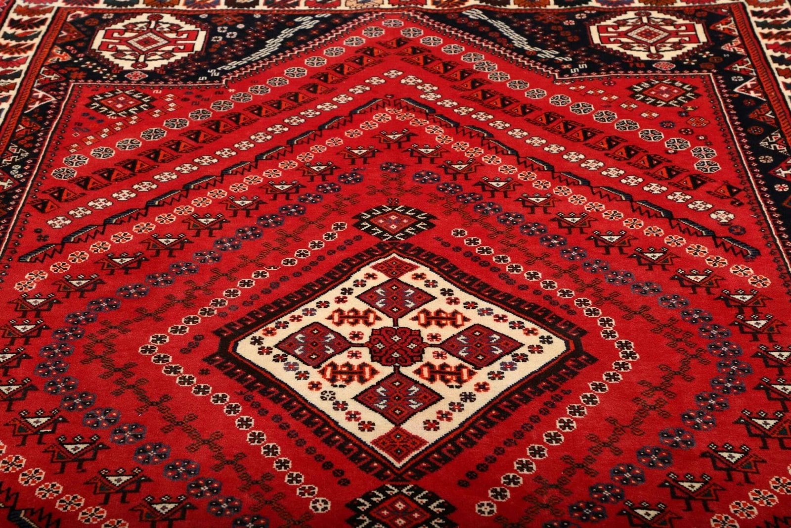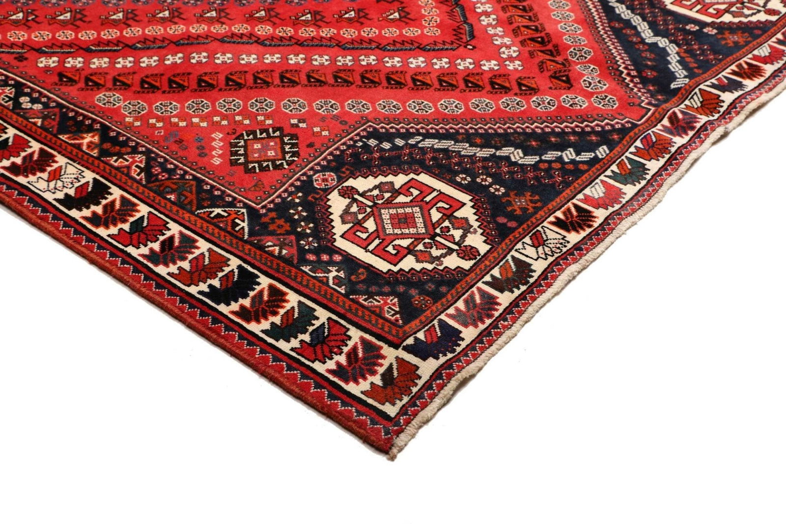 Shiraz, die Stadt, aus der dieser Teppich stammt, befindet sich im Süden des Iran und ist bekannt für ihre lebendige Teppichtradition. Die Teppiche aus dieser Region sind bekannt für ihre kunstvollen Designs und die Verwendung kräftiger Farben. Shiraz hat eine lange Geschichte der Teppichherstellung, die bis ins 16. Jahrhundert zurückreicht. Die Stadt war einst ein wichtiges Zentrum für Künstler und Handwerker, was sich bis heute in der Handwerkskunst der dort hergestellten Teppiche widerspiegelt.