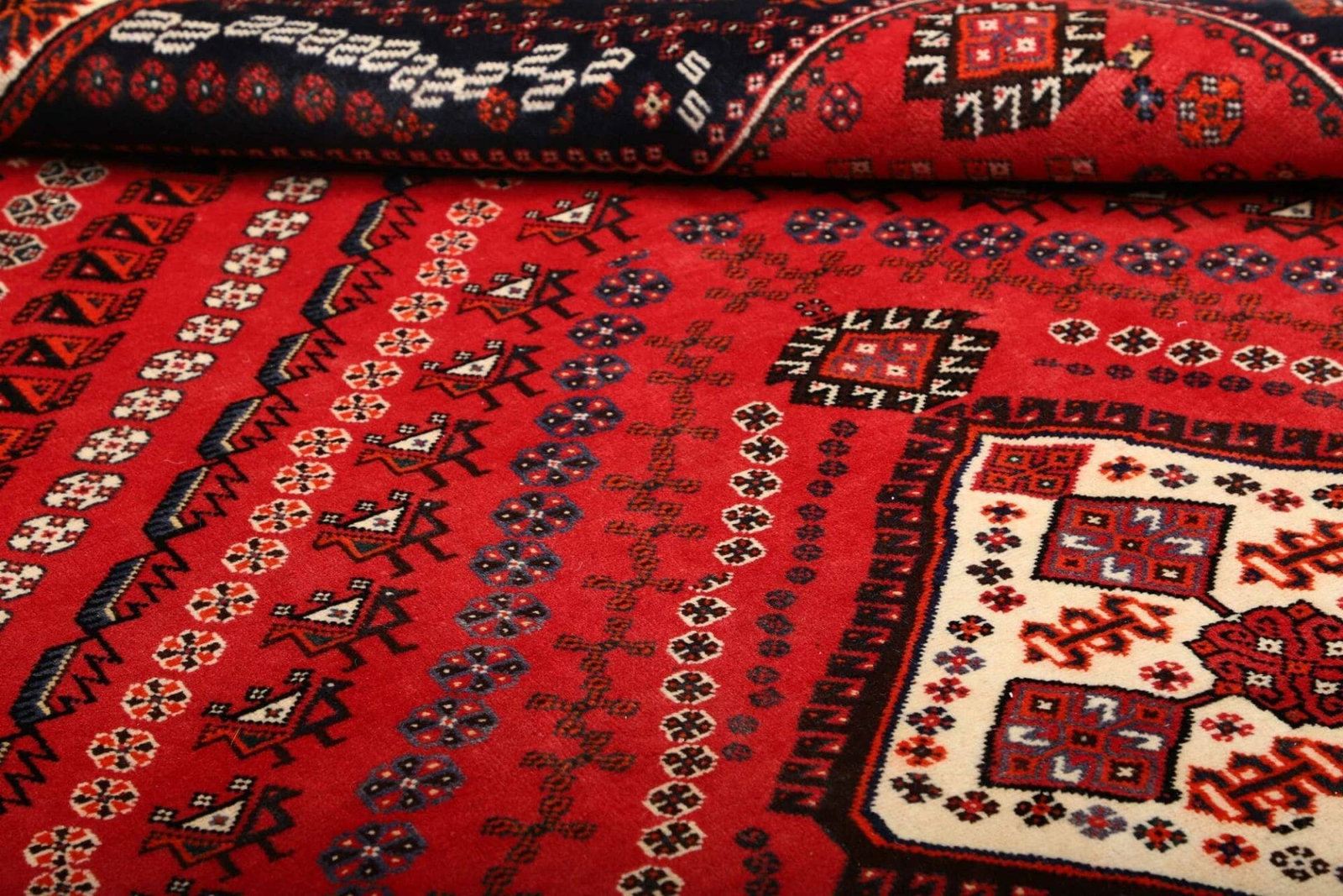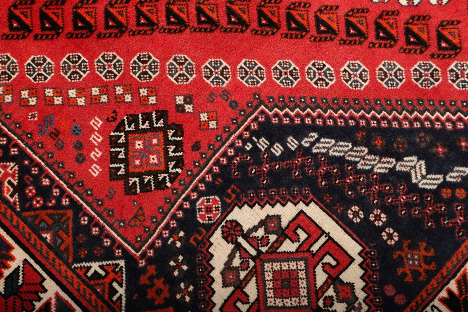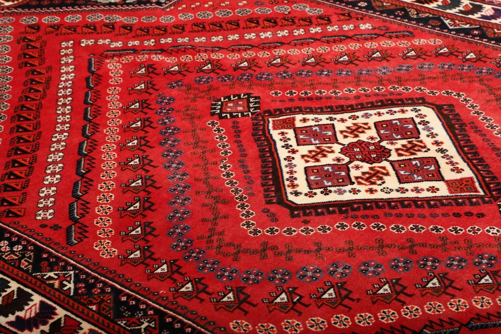 Shiraz, die Stadt, aus der dieser Teppich stammt, befindet sich im Süden des Iran und ist bekannt für ihre lebendige Teppichtradition. Die Teppiche aus dieser Region sind bekannt für ihre kunstvollen Designs und die Verwendung kräftiger Farben. Shiraz hat eine lange Geschichte der Teppichherstellung, die bis ins 16. Jahrhundert zurückreicht. Die Stadt war einst ein wichtiges Zentrum für Künstler und Handwerker, was sich bis heute in der Handwerkskunst der dort hergestellten Teppiche widerspiegelt.