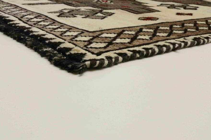 Handgeknüpfter Shiraz-Teppich | Knotendichte: 90.000 Knoten/m² | Material: Wolle (Kette, Schuss und Flor) | Größe: 210×133 cm | Zustand: Neu | Herkunft: Iran/Persien | Farbe: Weiß/Beige | Dicke: ca. 8 mm | Gewicht: ca. 6 kg