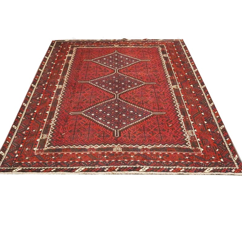 Shiraz Orientteppich 322×229 cm, rot mit geometrischen Mustern, handgeknüpft