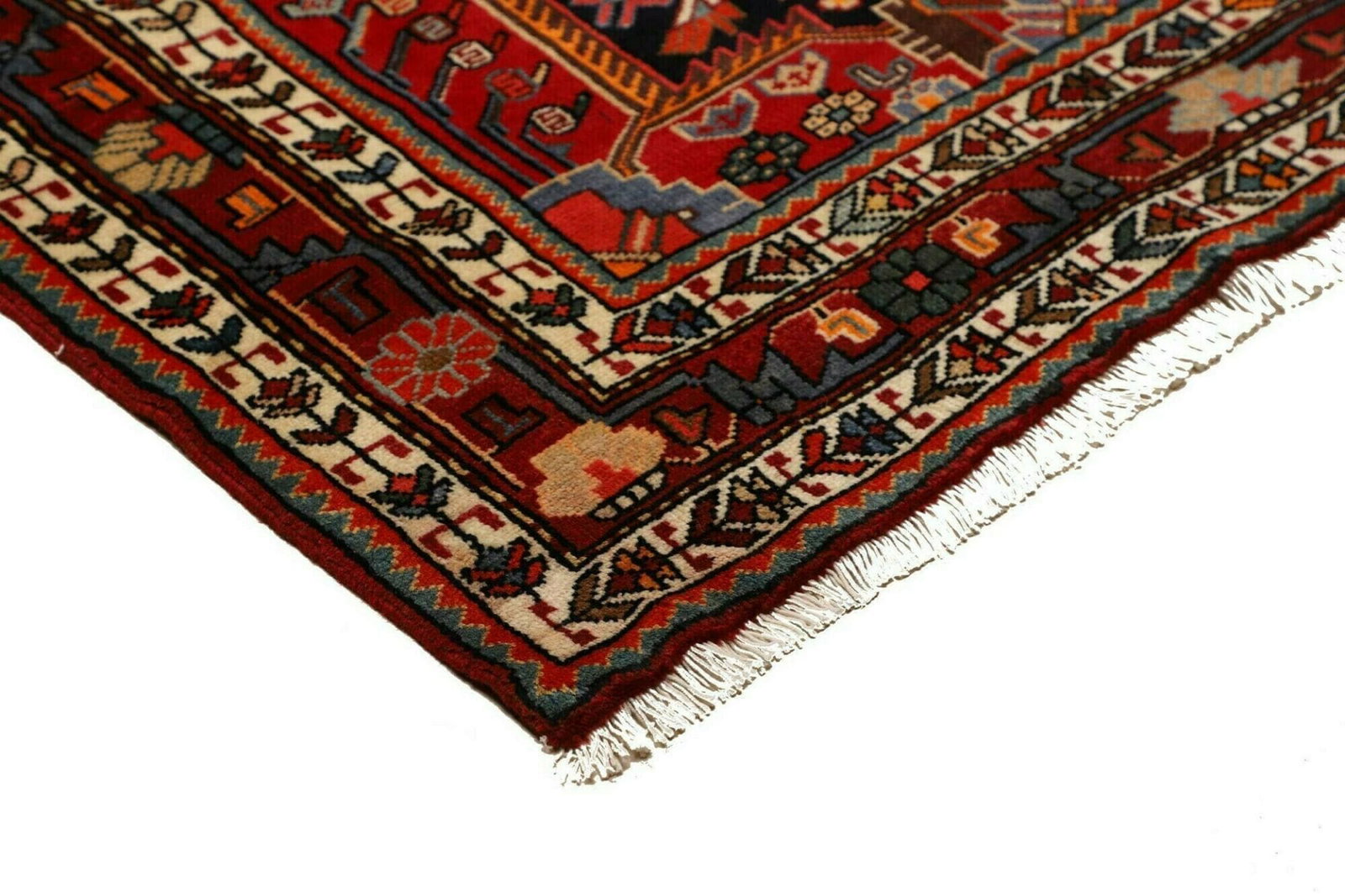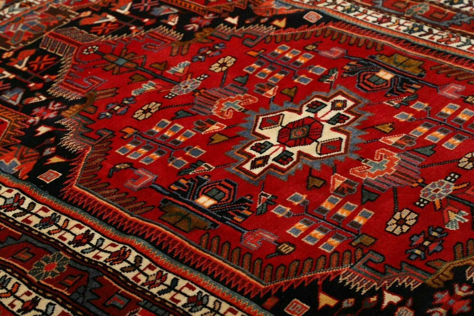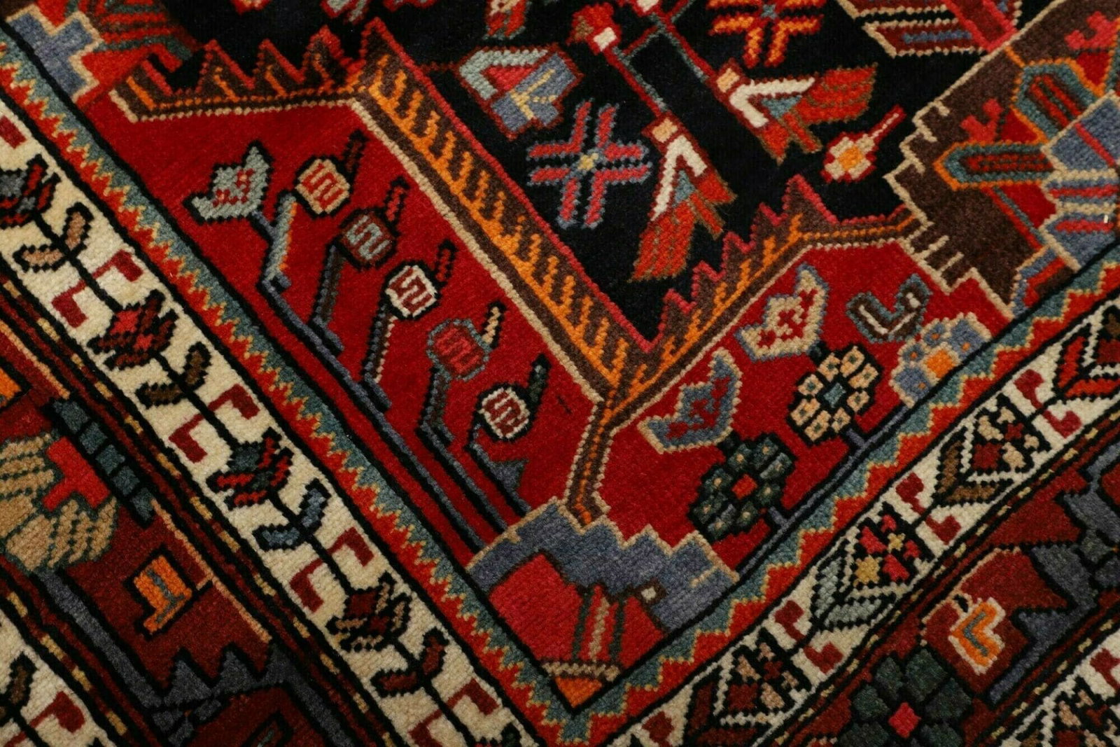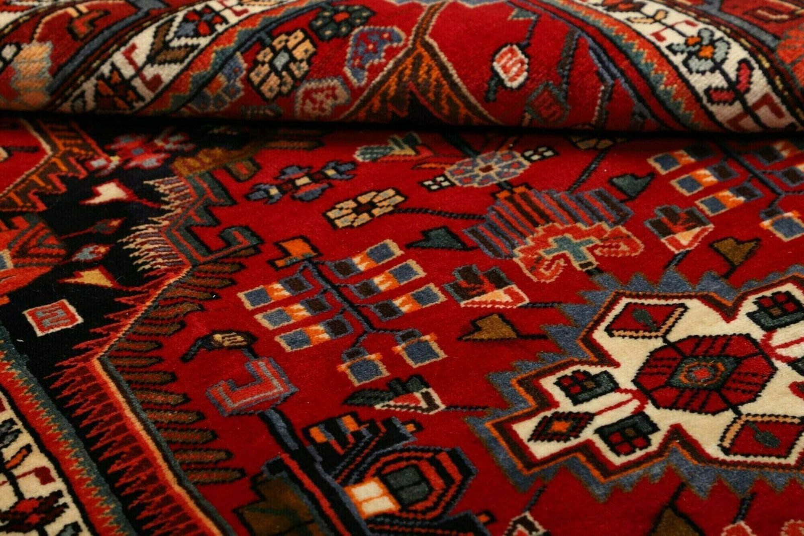 | Shiraz Teppich aus Iran | Knotendichte: ca. 200.000 Knoten/m² | Material: 100% Schurwolle | Kette: 100% Baumwolle | Größe: 136 x 210 cm | Höhe: ca. 10-12 mm | Handgeknüpfte Qualität | Geometrische Muster | In sehr gutem Zustand