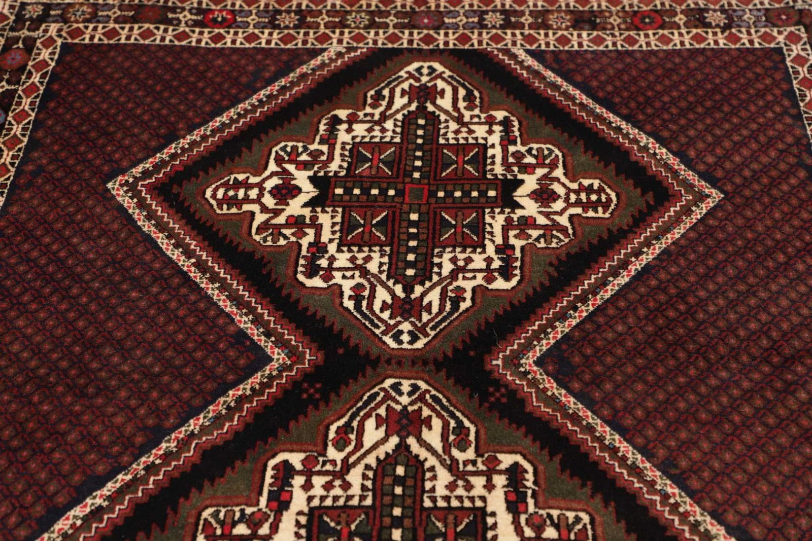 Shiraz Teppich 139 x 178cm, Wolle, geometrisches Muster, handgeknüpft