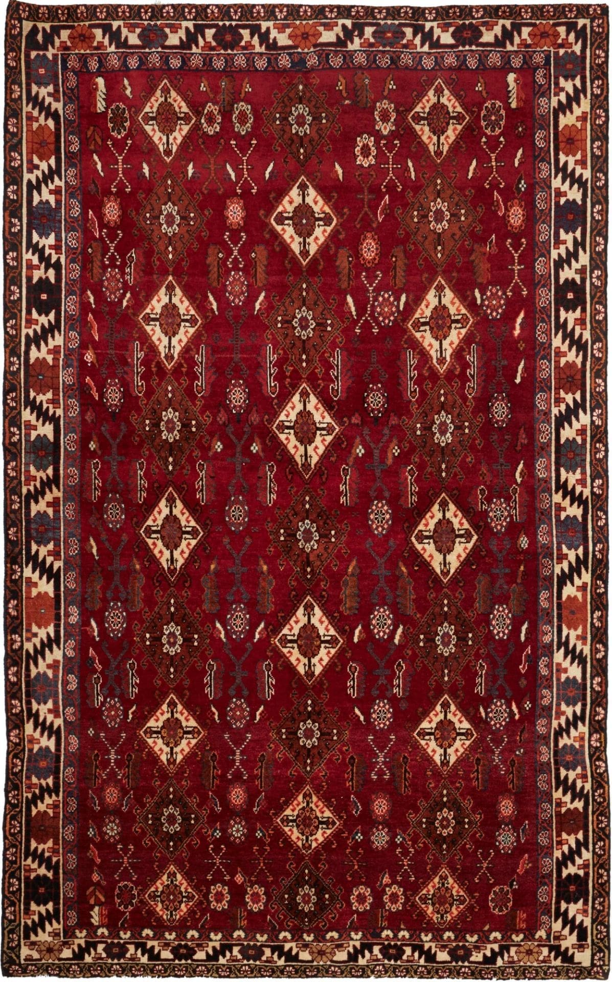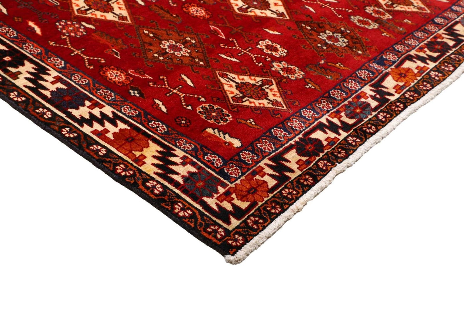 Shiraz Teppich | Größe: 161 x 258 cm | Knotendichte: ca. 200.000 Knoten/m² | Material: 100% Schurwolle (Flor), 100% Baumwolle (Kette) | Höhe: ca. 7-10 mm | Zustand: Handgeknüpft | Herkunft: Iran | Provenienz: Shiraz | Geometrisches Muster