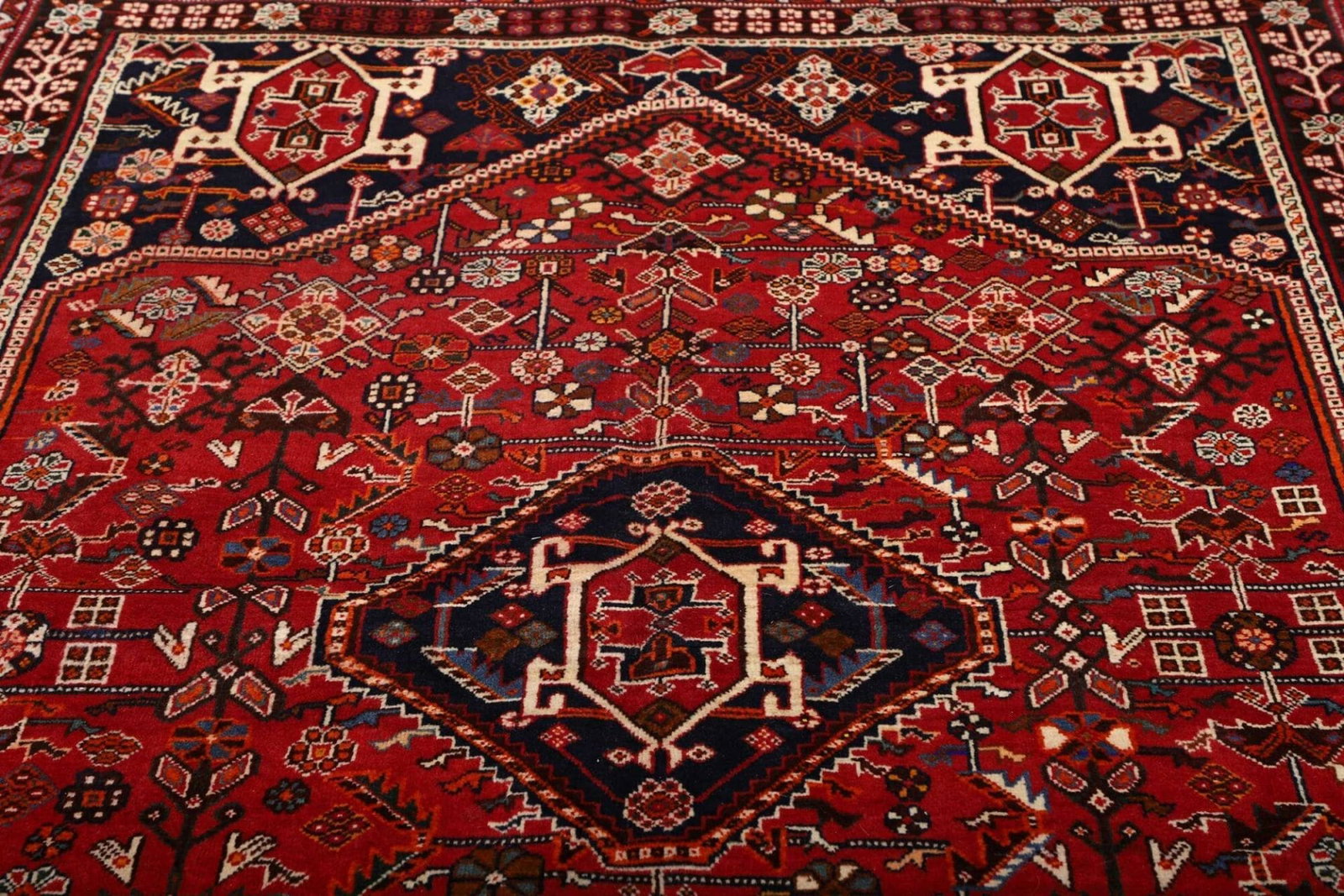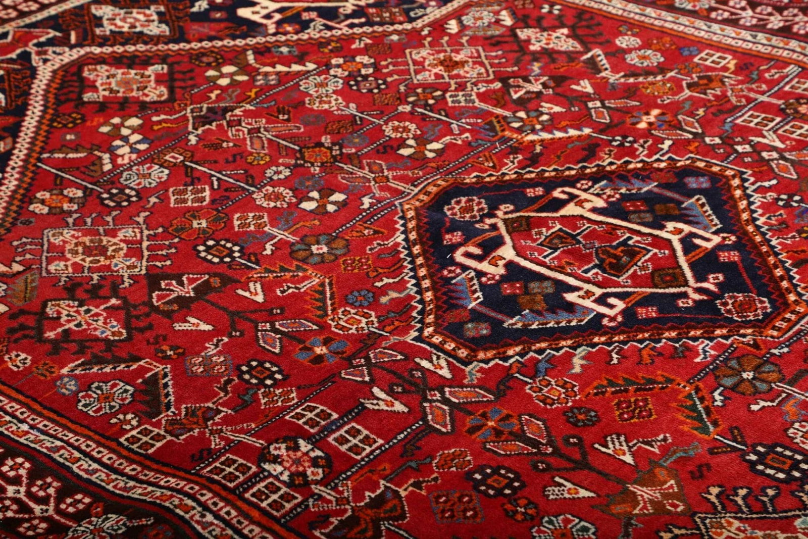 Der Shiraz Teppich stammt aus der Region Shiraz im Iran, einer Stadt, die für ihre reiche Teppichtradition bekannt ist. Diese Region ist berühmt für ihre farbenfrohen und künstlerisch gestalteten Teppiche, die oft geometrische Muster und symbolische Designs enthalten. Die Teppichmacher in Shiraz setzen seit Jahrhunderten auf traditionelle Techniken, die von Generation zu Generation weitergegeben werden. Diese handwerkliche Tradition ist untrennbar mit der Kultur und Geschichte Irans verbunden und spiegelt sich in jedem einzelnen Stück wider.