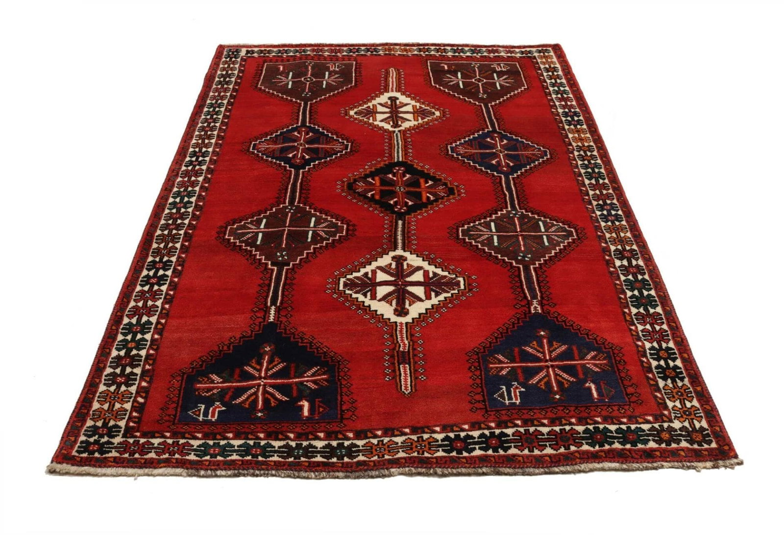 Shiraz Teppich 168 x 252cm, handgeknüpft, Wolle auf Wolle, geometrisch
