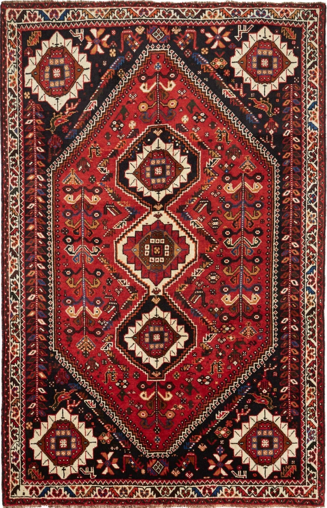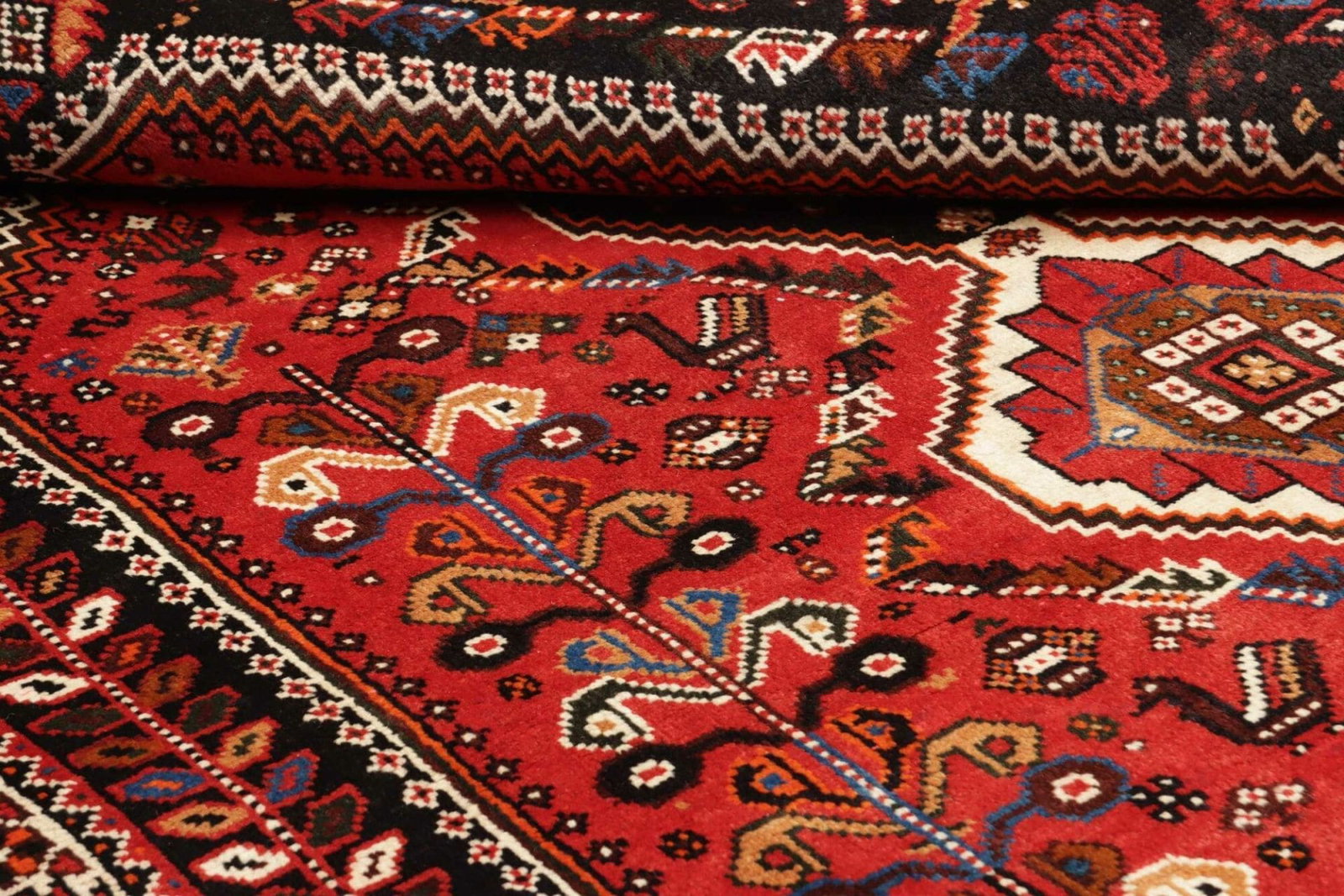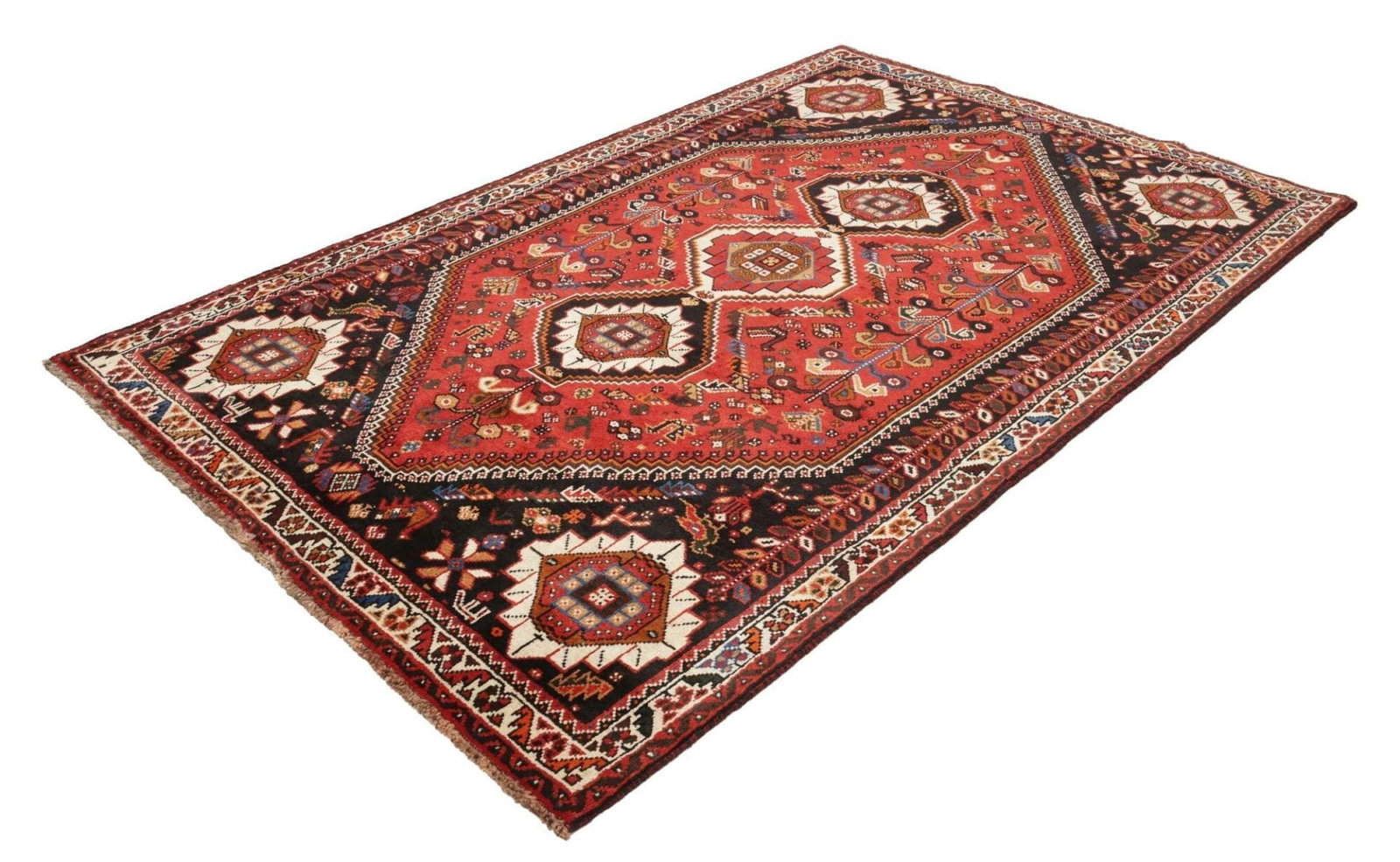 Shiraz Teppich handgeknüpft aus Schurwolle mit geometrischem Muster