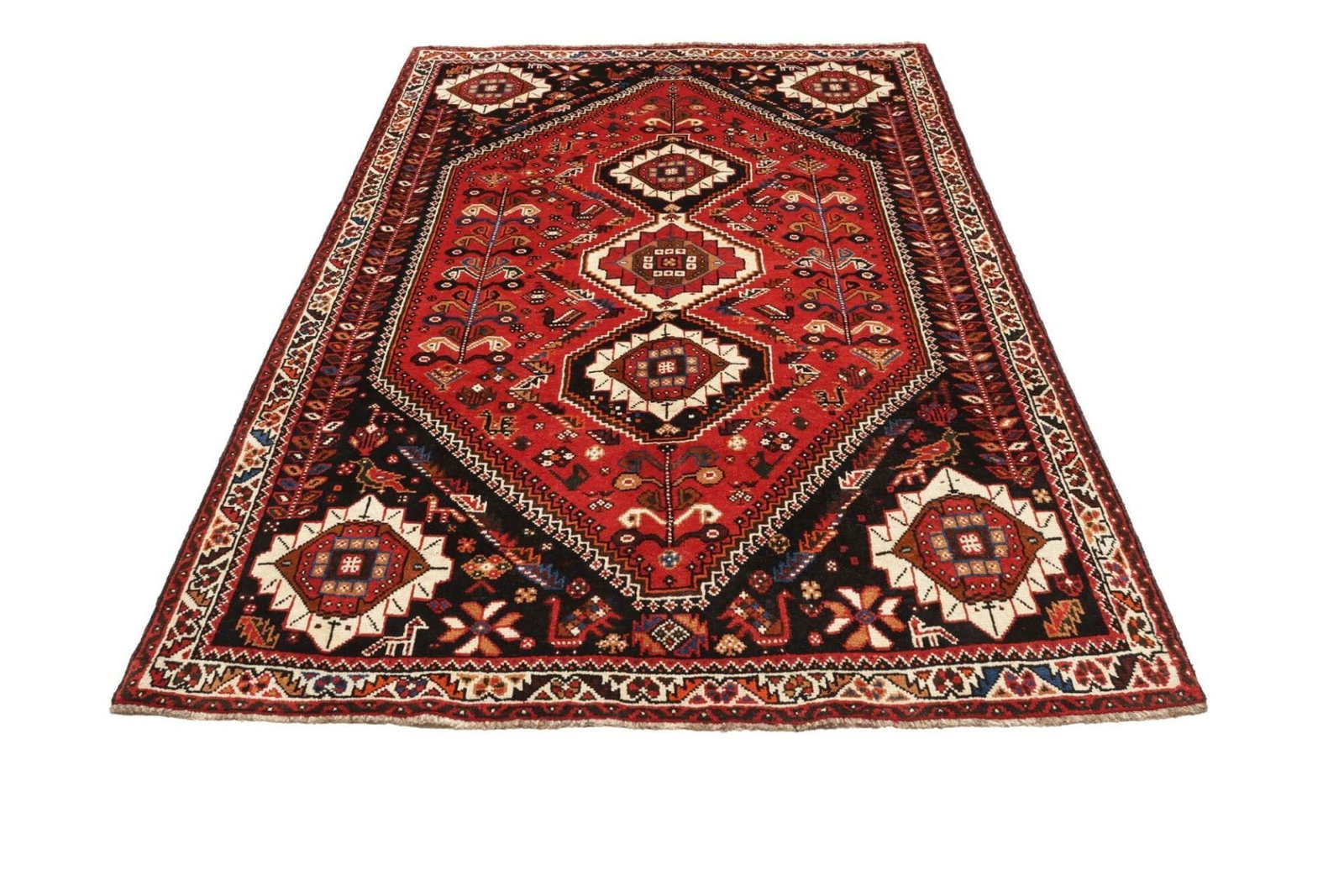 1748$Ursprünglicher Preis war: 1748$1447$Aktueller Preis ist: 1447$Shiraz Teppich | Knotendichte: ca. 200.000 Knoten/m² | Material: 100% Schurwolle | Größe: 171×260 cm | Verarbeitung: Handgeknüpft | Herkunft: Iran | Provenienz: Shiraz | Höhe: ca. 7-10 mm | Kette: 100% Baumwolle | Geometrisches Muster