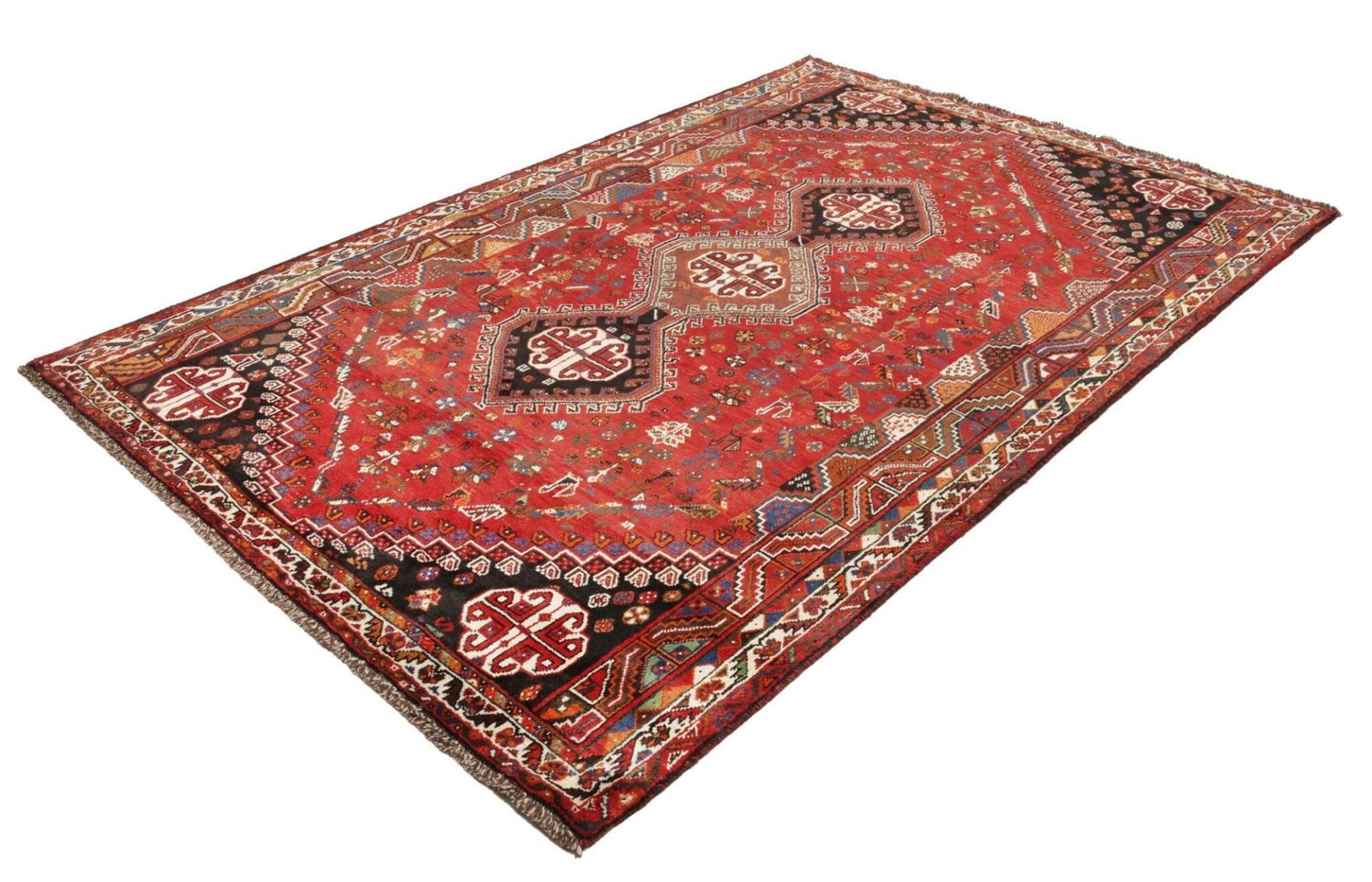 1748$Ursprünglicher Preis war: 1748$1390$Aktueller Preis ist: 1390$| Shiraz Teppich aus Iran | Größe: 175 x 260 cm | Knotendichte: ca. 200.000 Knoten/m² | Flor: 100% Schurwolle | Kette: 100% Baumwolle | Höhe: ca. 7-10 mm | Handgeknüpfte Qualität | Geometrisches Muster | In gutem Zustand