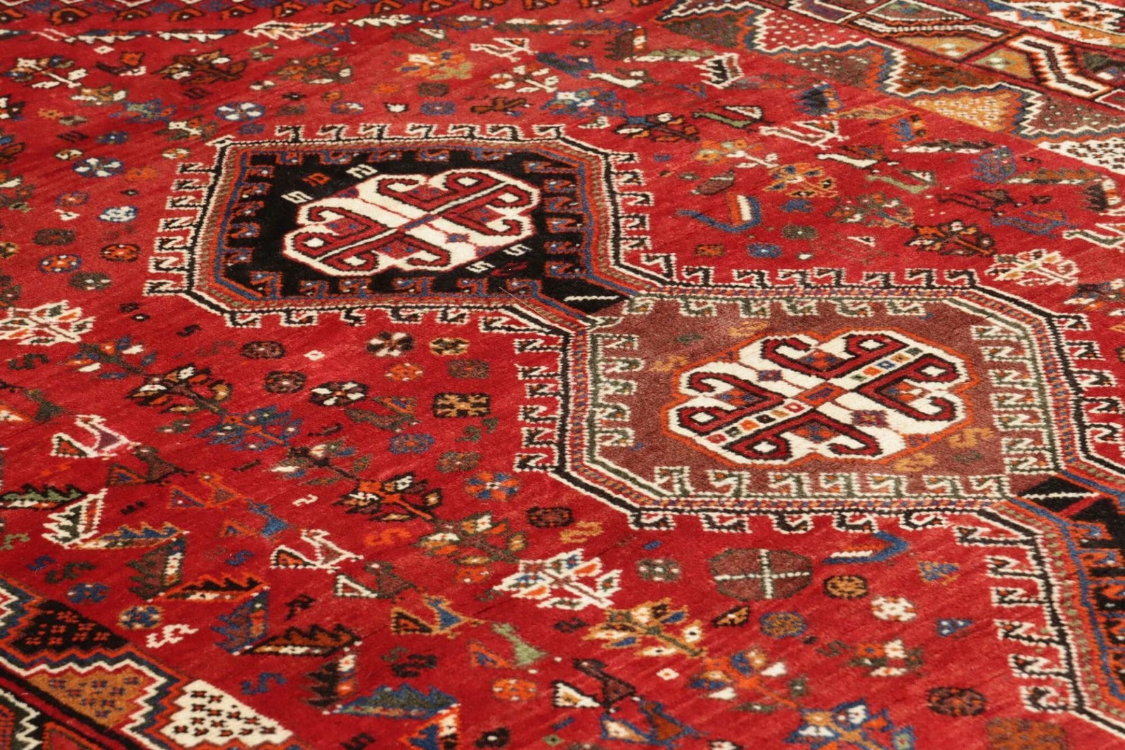 Der Shiraz Teppich stammt aus der gleichnamigen Region Shiraz im Süden des Irans, die nicht nur für ihren Teppichhandwerk berühmt ist, sondern auch für ihre kulturelle Bedeutung. Shiraz gilt als eine der ältesten Städte des Iran und wird oft mit Poesie, Wein und einer reichen Geschichte assoziiert. Die Handwerkskunst des Teppichknüpfens hat hier eine lange Tradition, die bis ins 16. Jahrhundert zurückreicht. Die Teppiche aus dieser Region sind häufig geprägt von lebendigen Farben und raffinierten Mustern, die die Schönheit der iranischen Landschaft und Kultur widerspiegeln.